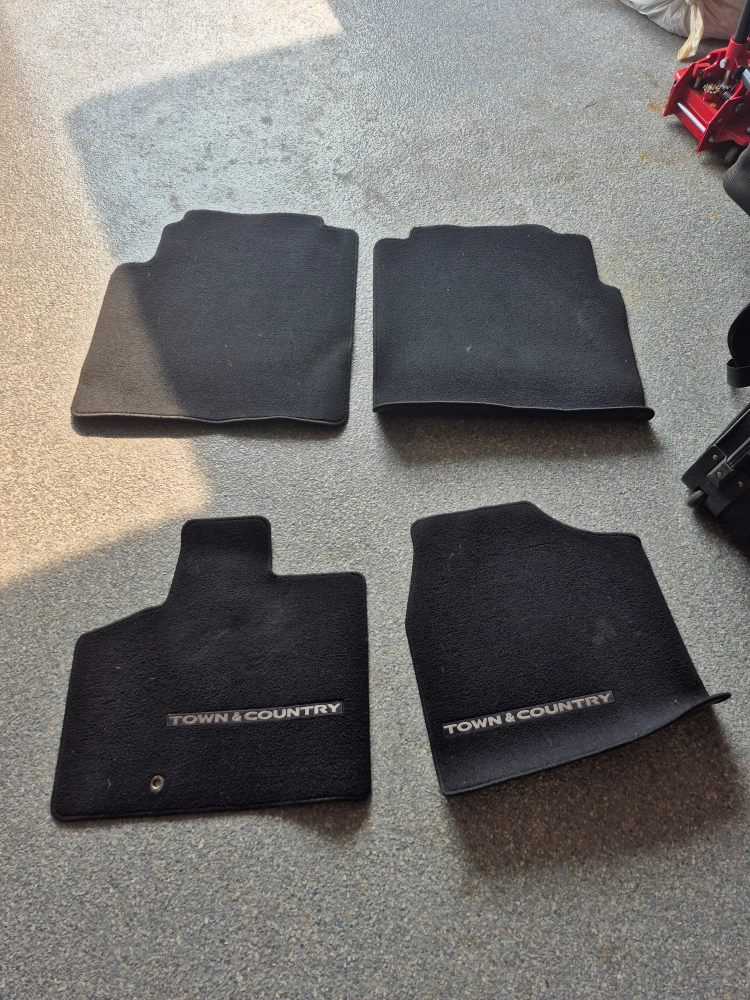 Selling a set of used floor mats for a Chrysler Town & Country. They are black and in good condition. Perfect for keeping your car clean! Came from my 2011 Chrysler Town and Country. I no longer own the vehicle.