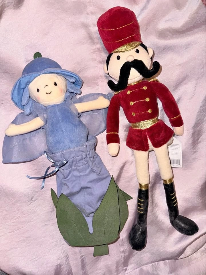 Two Jellycat plush dolls: Nutcracker soldier, Flower fairy doll. Both in very good condition. $20 for both OBO. Pickup near Don Mills. Cash or e-transfer.