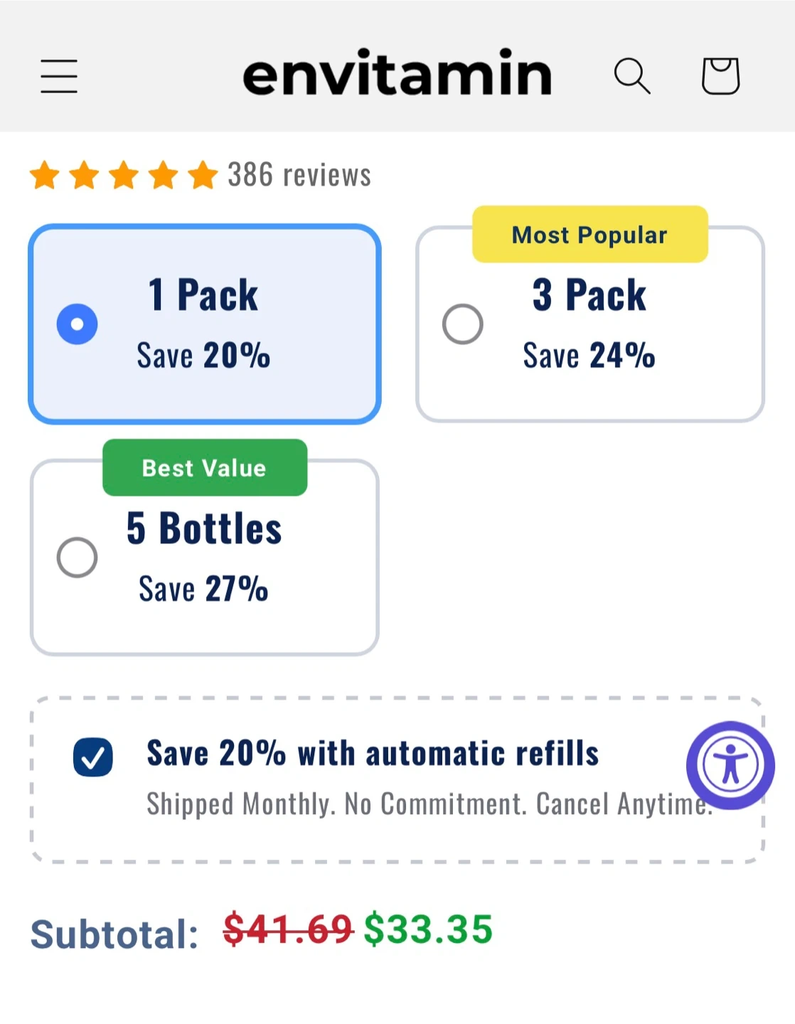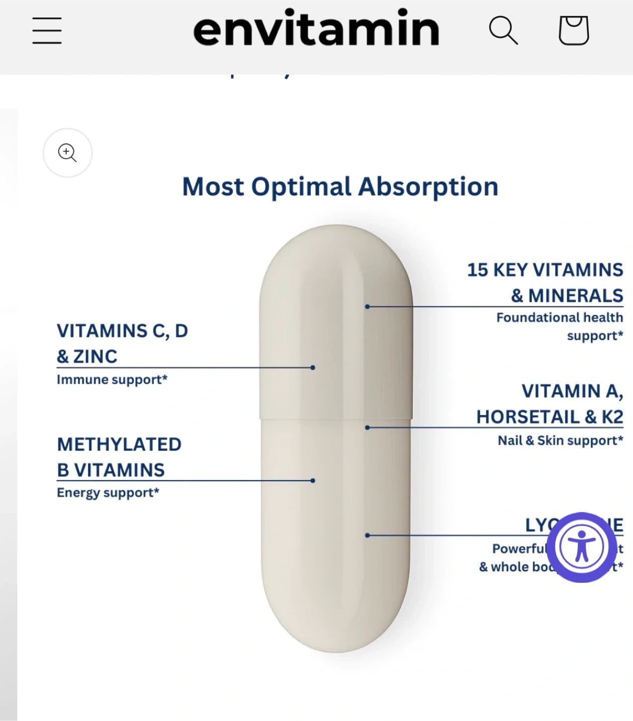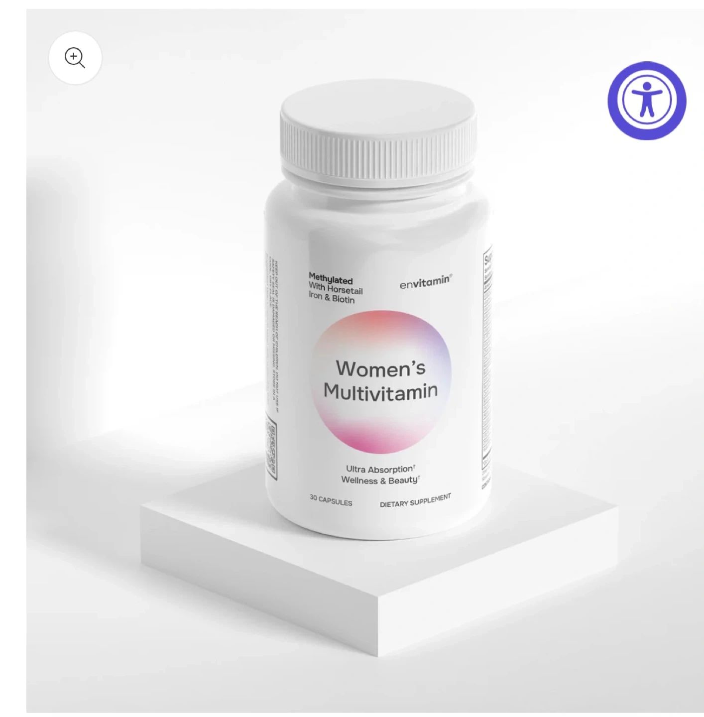 This envitamin Women's Multivitamin provides ultra absorption for wellness and beauty. It contains 15 key vitamins & minerals, including Vitamin C, D, Zinc, and Methylated B Vitamins. Each bottle has 30 capsules, with one serving per capsule.