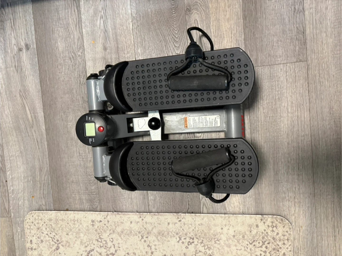 This stair stepper offers a compact workout solution for your home. It includes resistance bands to engage your upper body during workouts. The digital display tracks your steps and workout time. It's great for a quick cardio session!