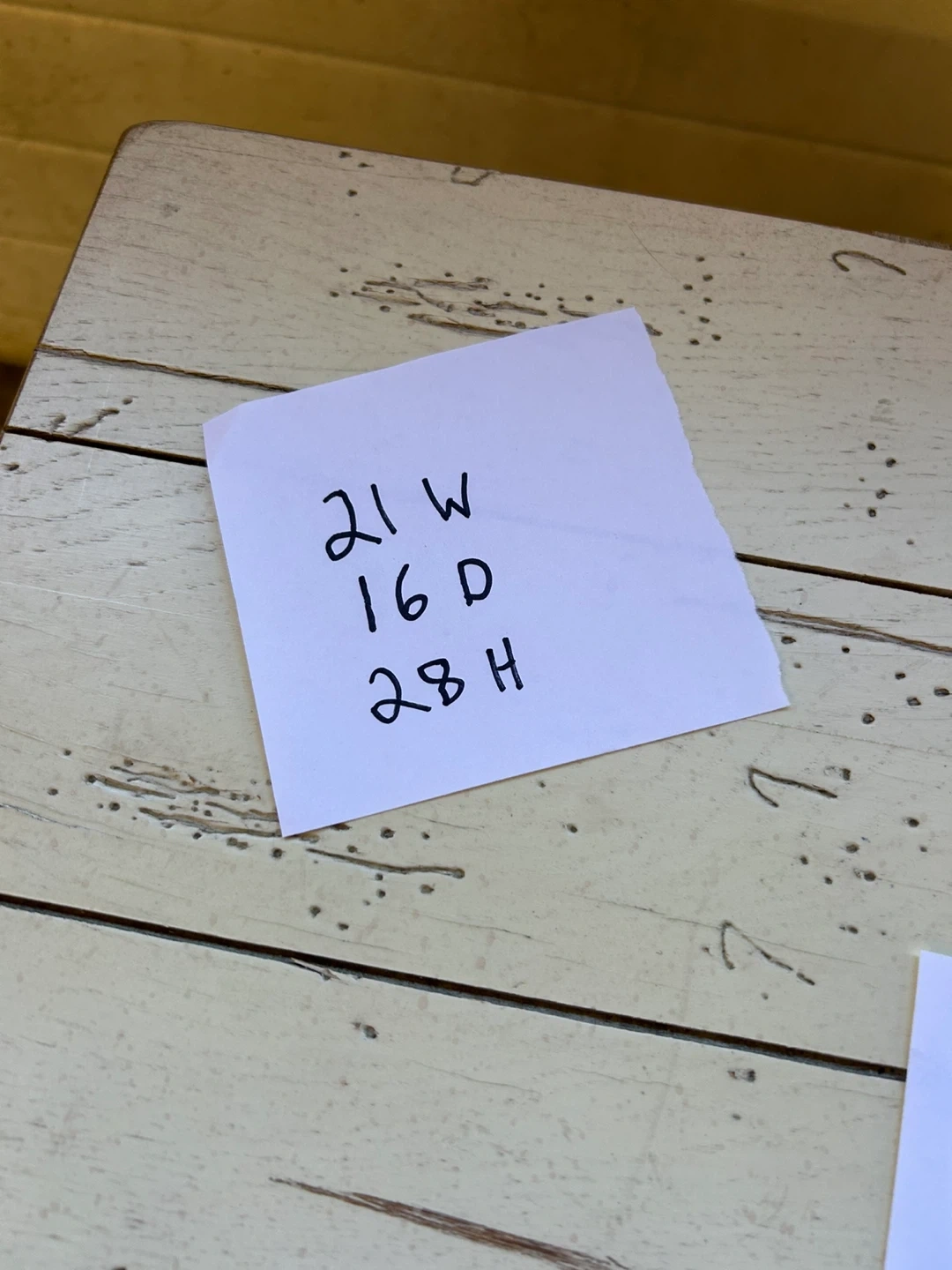 A charming white side table with a cabinet at the bottom. Dimensions are 21" W x 16" D x 28" H. It's a great size for a bedroom or living room.