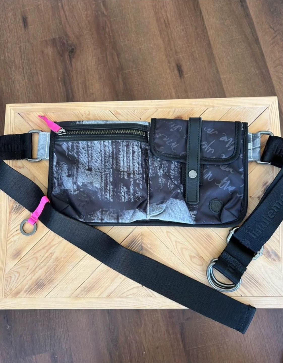 Selling a Lululemon belt bag in a stylish black and grey pattern! It’s in great condition and ready for your next adventure. Perfect for keeping your essentials close at hand while on the go