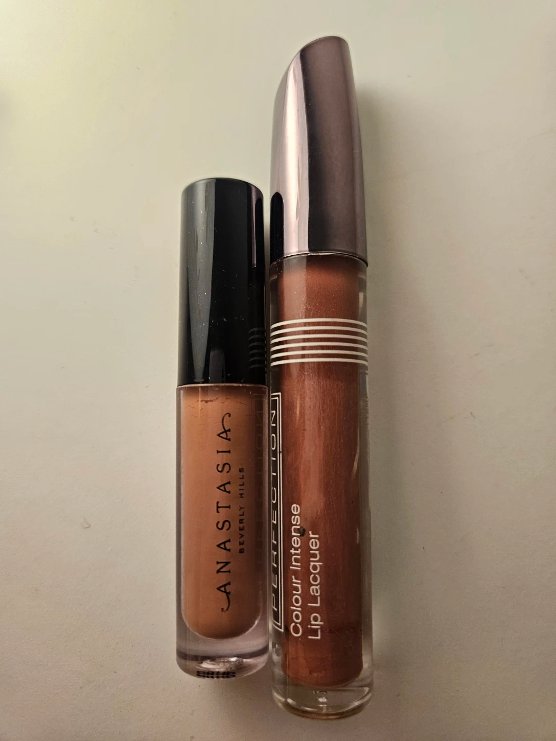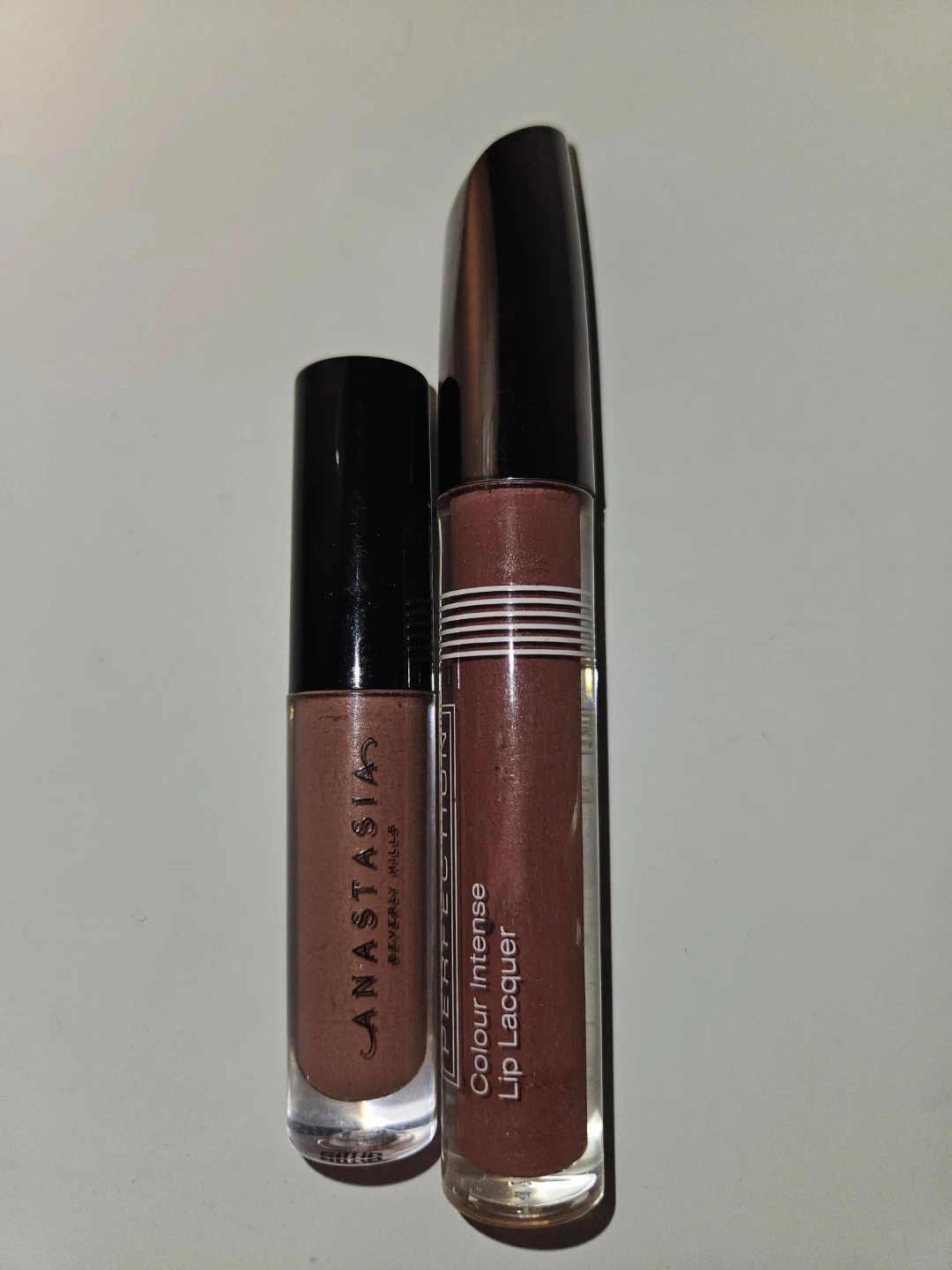 Two lip lacquers, one from Anastasia Beverly Hills and another from Perfection. Includes a Colour Intense Lip Lacquer.