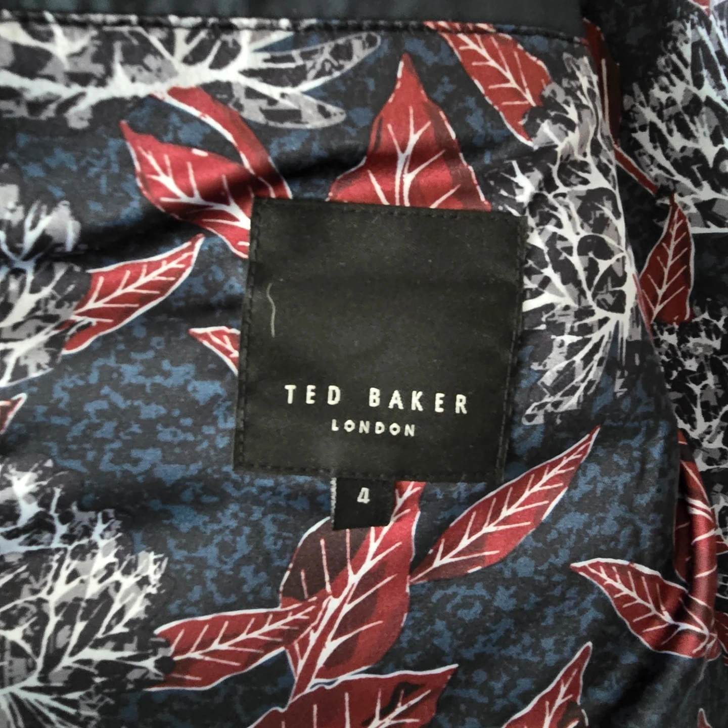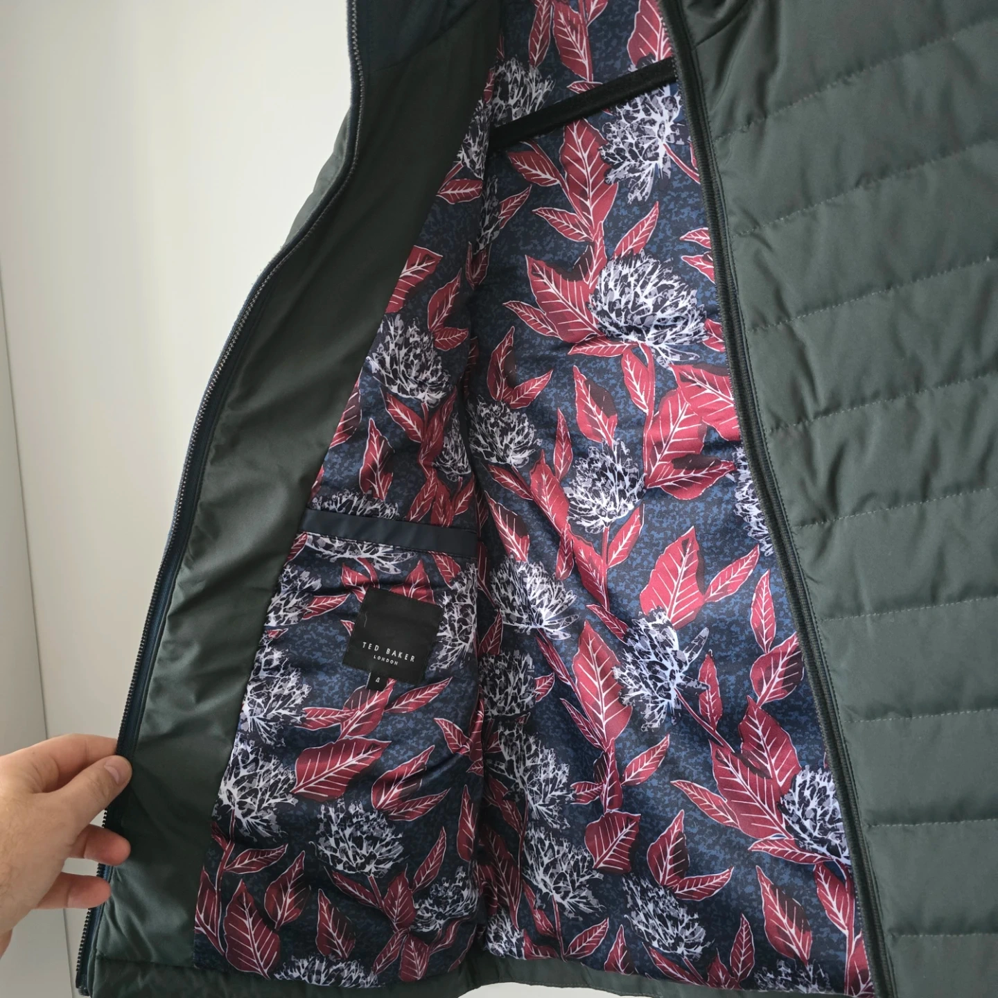 Practically brand new, worn twice. Ted Baker London vest in size 4, duck down filled. Stylish leaf-patterned interior, forest green exterior. Stylish and quality. Sells for $300 new. Pick up in Brentwood.