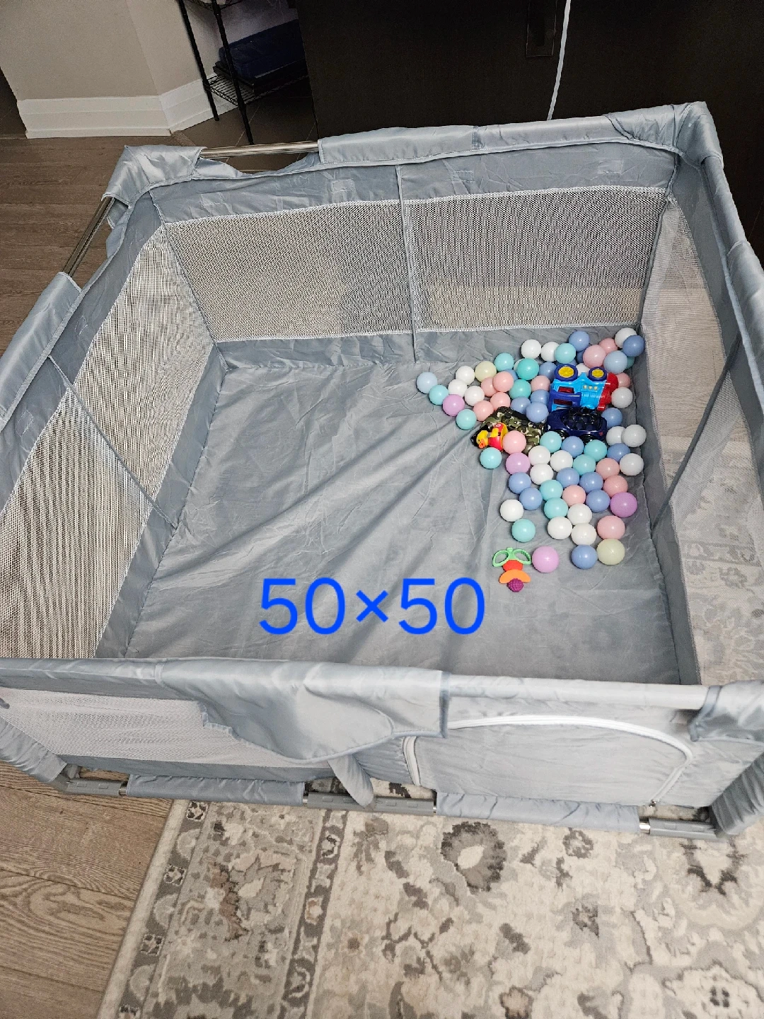 41Selling a baby playpen that's in great condition! It's a Cimbo Baby Playpen, model number BWL001. The playpen measures 50x50. It's a safe and fun space for your little one to play!