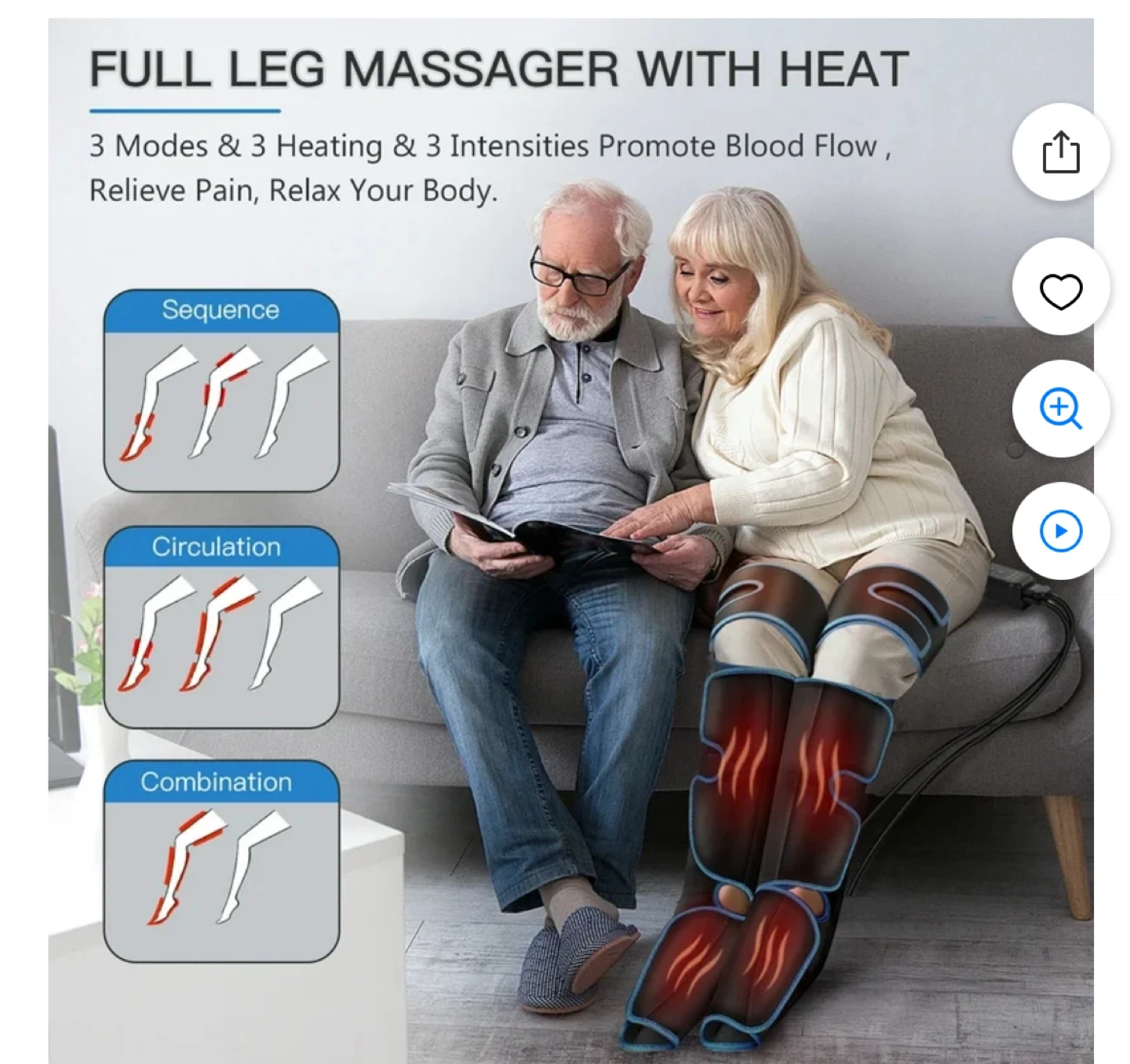20Get your legs feeling great with this Cincom Leg Massager! It features 3 modes and 3 heating intensities to promote blood flow and help you relax. It's designed for calf and thigh muscle relaxation and recovery. The actual color is blue. It fits most with extensions: thigh 15", calf 21", foot 11.5". Includes 2 thigh extensions form 27" and 2 calf extensions form 28.5".