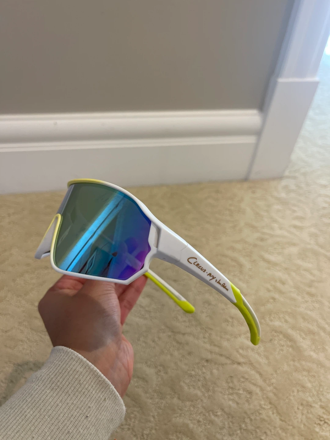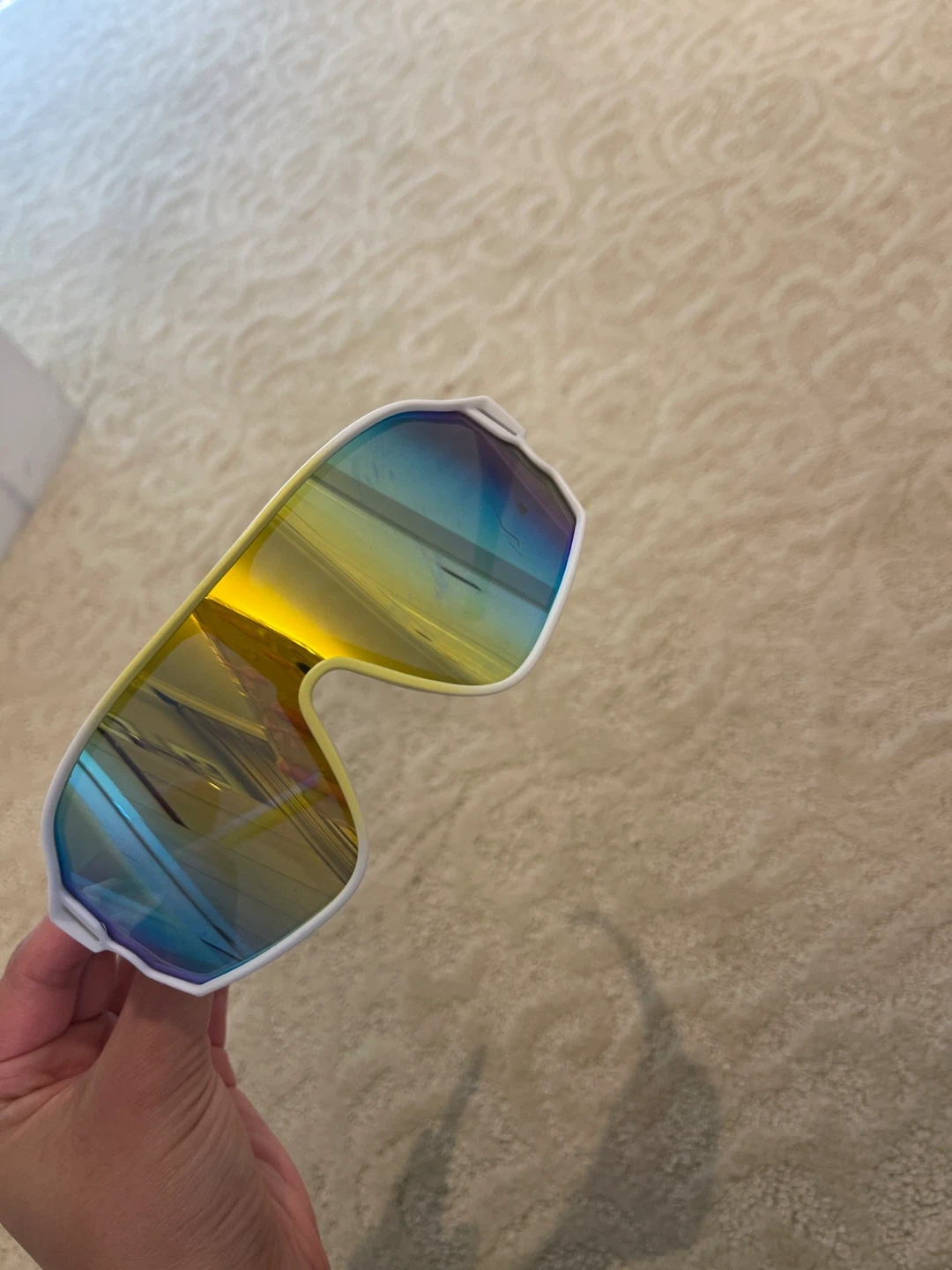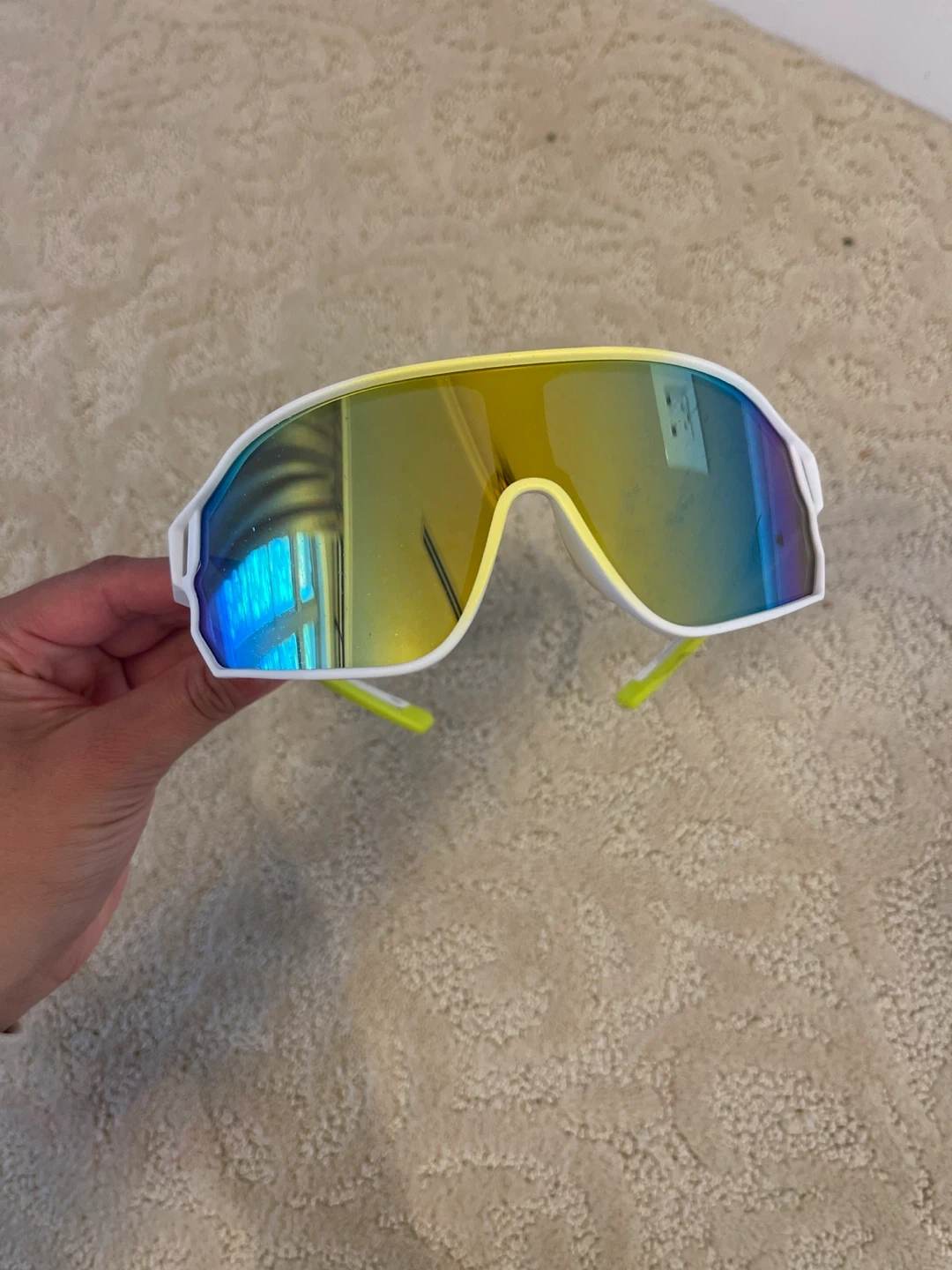 25These Circus Hotel sunglasses are in great shape and ready for a new home! They feature a stylish white frame with yellow accents and lenses that shift from yellow to blue depending on the angle. Perfect for adding a pop of colour to your look!
