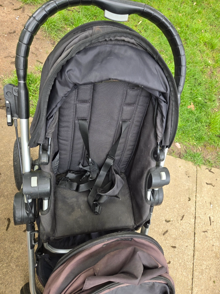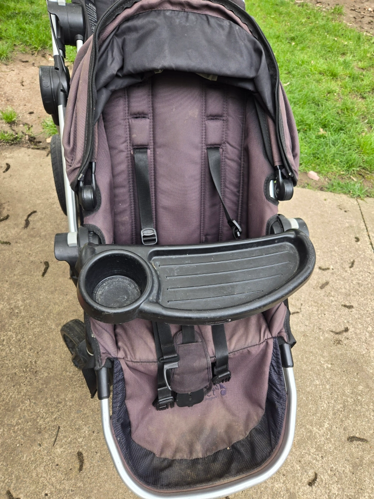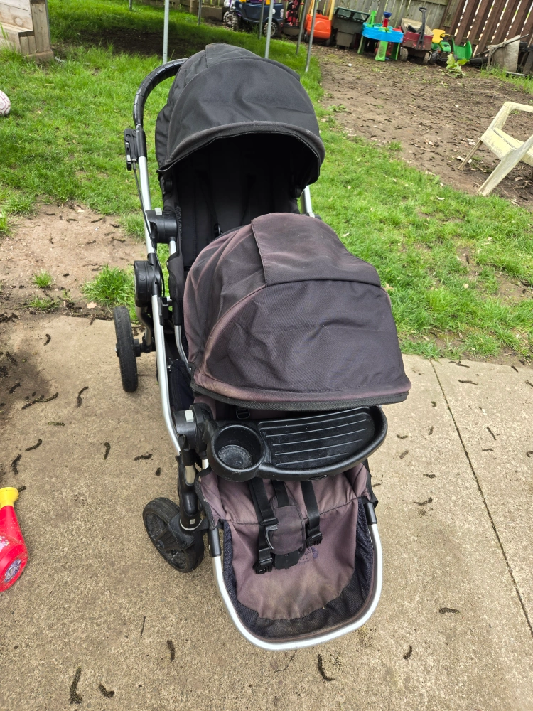 Selling a City Select double stroller. It's in used condition, but still works great for getting around with two little ones. It has a lot of life left in it! Has thr attachments to make it an infant/toddler combo. Also has a cup holder for you to use.