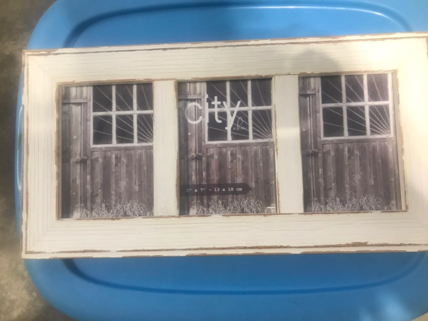 Rustic looking wooden frame , It holds three 5" x 7" photos, No holds FCFS x posted Cash and pickup only