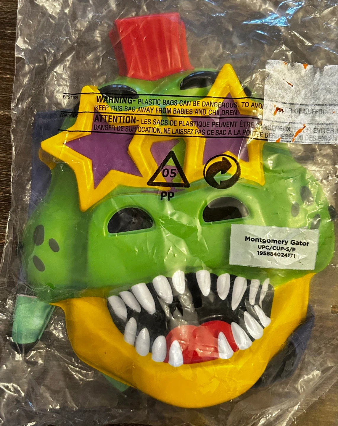 Selling a Montgomery Gator mask from Five Nights at Freddy's. It's in great condition and ready for a new fan! Comes with gloves.