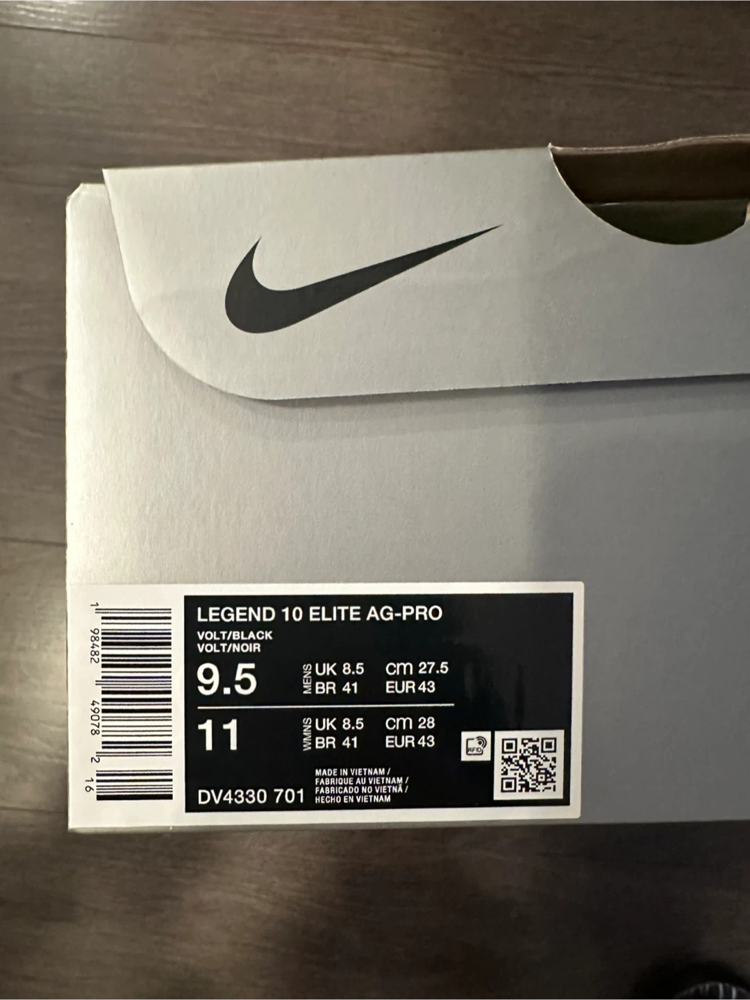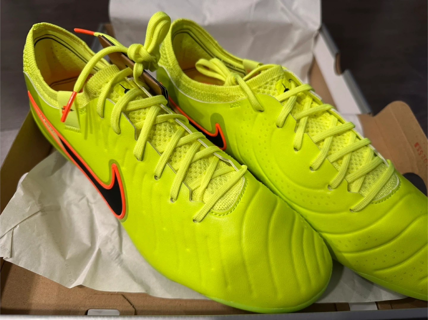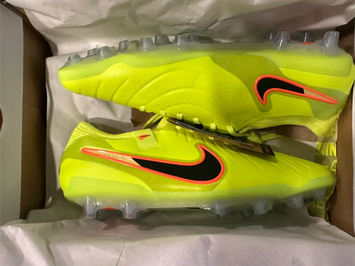 Brand-new (unused with tags) Nike Legend 10 Elite AG-Pro football cleats in a vibrant Volt/Black colourway. Men's US size 9.5 (UK 8.5, EUR 43). These cleats are designed for artificial grass pitches. They come in the original box.