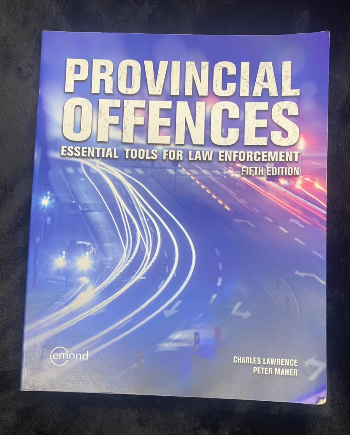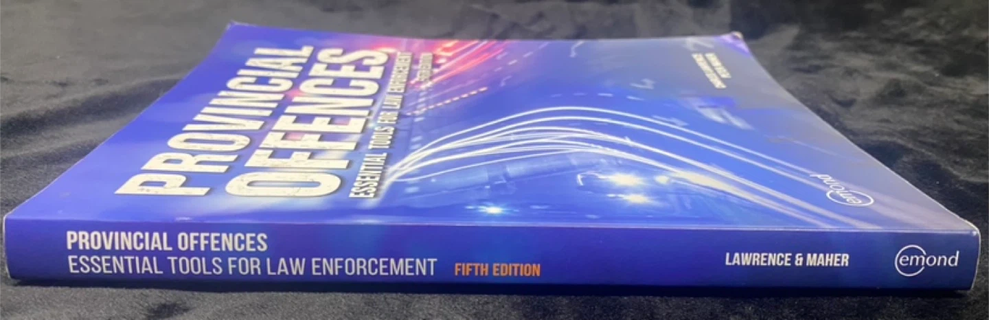 This is the Emond Provincial Offences: Essential Tools for Law Enforcement textbook, Fifth Edition. It's a comprehensive guide to provincial offences, and its clear and concise language makes it easy to understand. I'm selling this textbook in used condition, it has some wear on the cover, but the pages are clean and unmarked, offering great value for law enforcement students or professionals needing a reference guide. A new copy of this book typically retails for around $120-$150, so this is a great deal for a textbook in good condition!