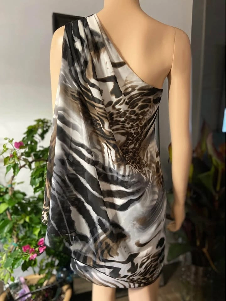 NWT Onyx Nite Brown Animal Print One-Shoulder Dress (Size 2) 403