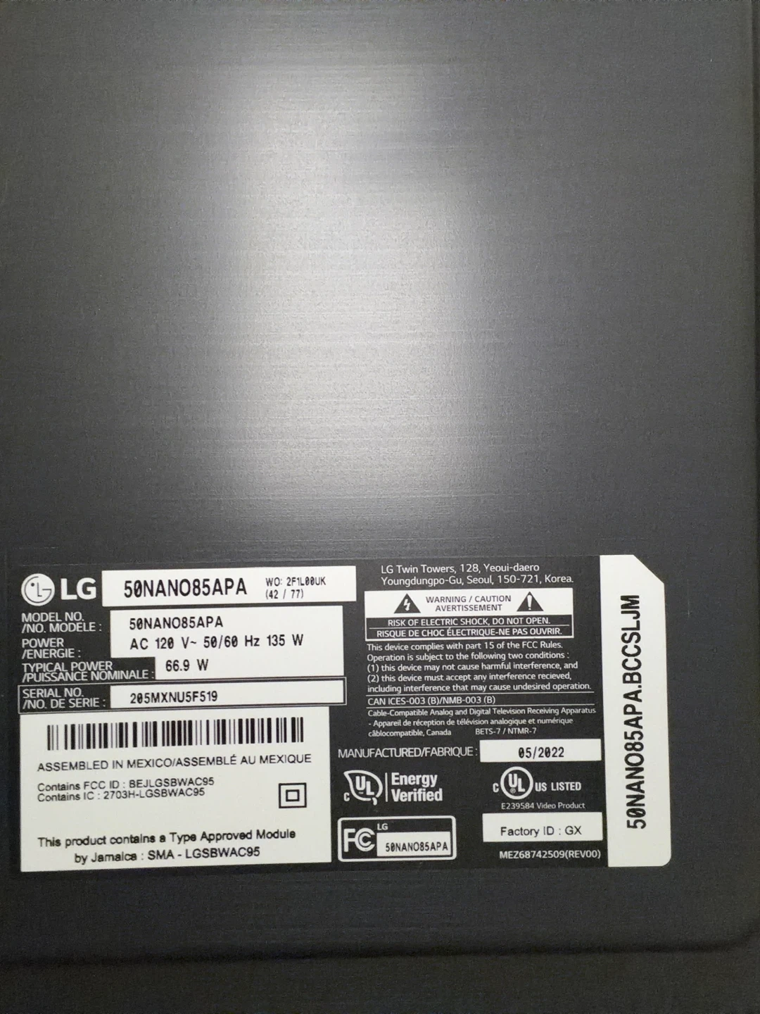 Selling a used LG 50NANO85APA 50-inch 4K UHD Smart TV.