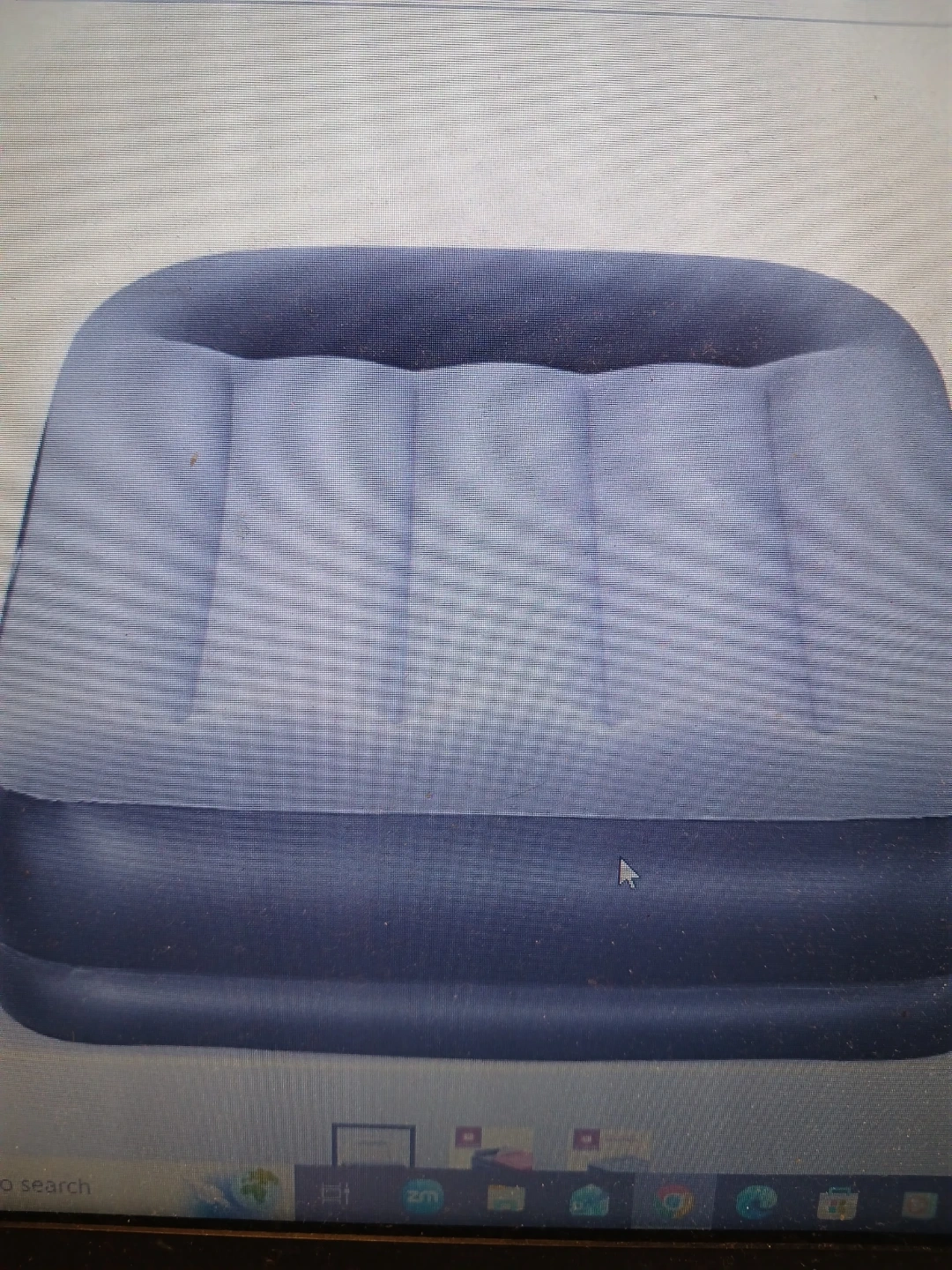 This is a blue inflatable air mattress. It's made of durable material for comfort. This mattress is great for camping trips or unexpected guests!