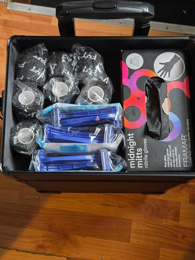 4. Brand new traveling case with keys. 5. 10 boxes of various tattoo cartridges (expires 2027, sizes 3RL to 11RL, 7 to 11 mag, 3 to 9 Round Shaders) and an additional 50 brand new unopened cartridges.