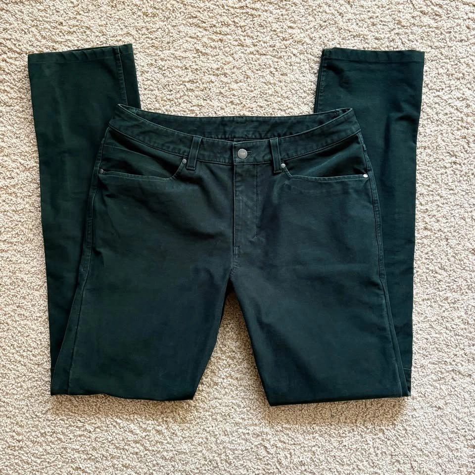 The 5-pocket jean, reinvented. These classic-fit pants are engineered for freedom of movement and all-day comfort. Very good pre-loved condition; there is a tiny superficial hole mid-leg on the first layer, which does not go through the fabric. I believe these are the Green Jasper colour, best described as hunter green / forest green. The model photo is included to illustrate fit only. Designed for: On the Move. Reflectivity: Flip up the cuffs to expose reflective details. Fit: Classic fit. Secure pocket: Hidden zippered pocket to stash cards and key. Abrasion-resistant Utilitech™ fabric is four-way stretch with a natural feel. Everyday performance. M5ABMS. Measurements are approx.: Length 107.5cm, Waist 41cm, Rise 30cm, Inseam 85cm, Cuff 17.5cm. Porch pick up west Maple Ridge.