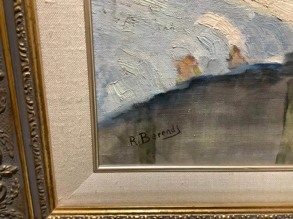 Beautiful oil painting featuring a serene winter landscape. It comes in a 36” x 28” gilded wood frame. Feel free to message if you have any questions!