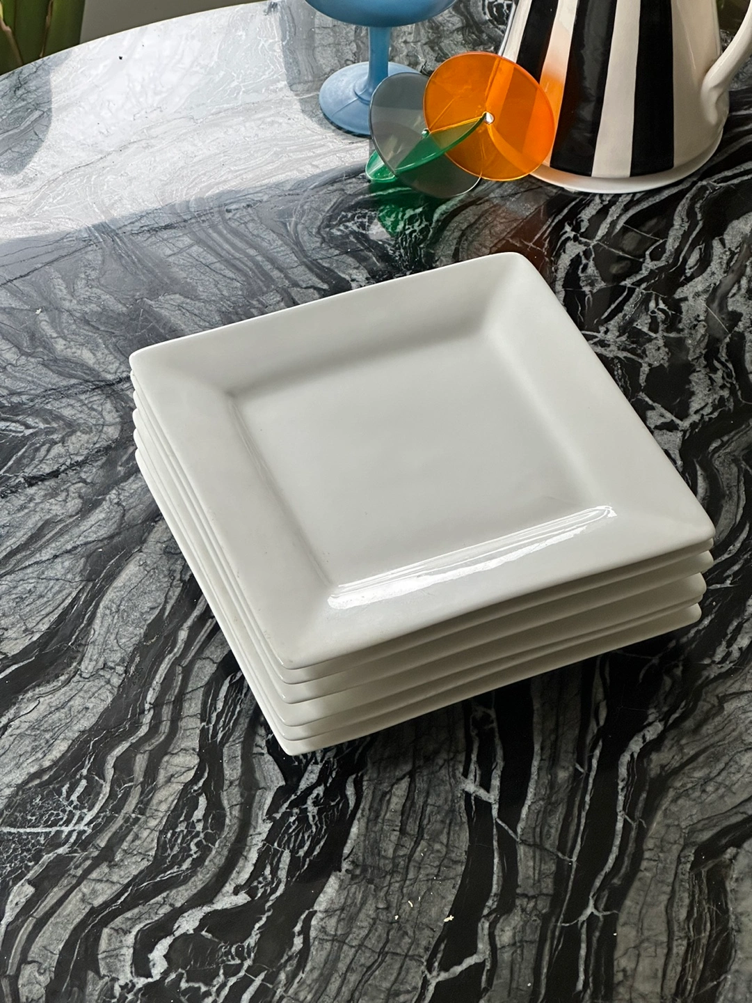FREE Set of 6 white porcelain square dinner plates. They’re super cute but just don’t match my aesthetic anymore and i need to declutter ! :)