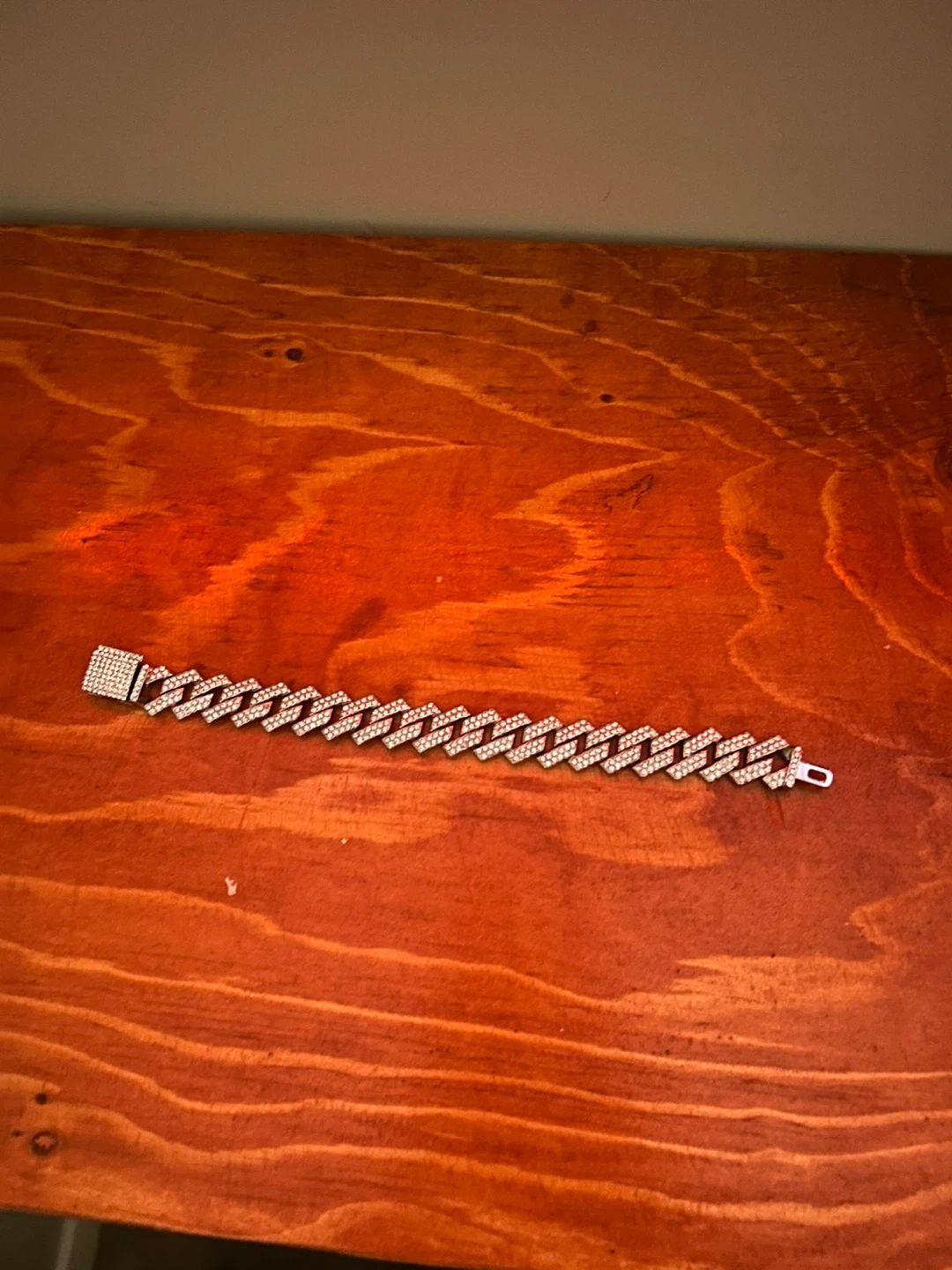 A stylish prong link bracelet with sparkling cubic zirconia stones. This piece catches the light beautifully and adds a touch of glamour. It's secured with a sturdy clasp.
