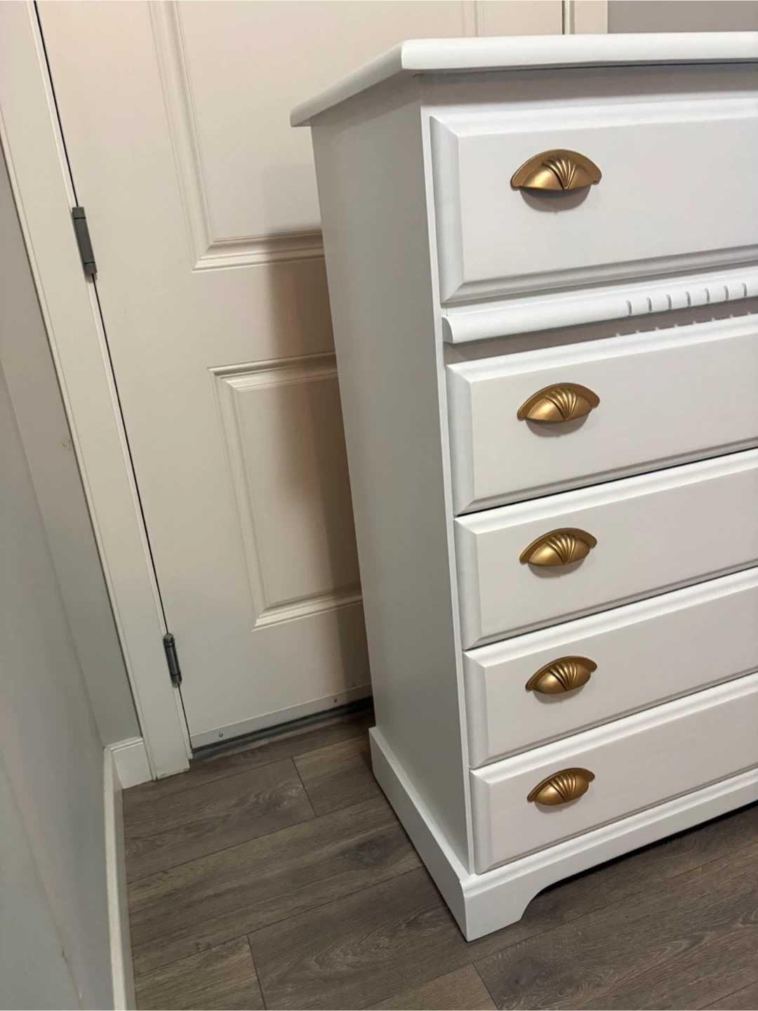 White 5-Drawer Dresser with Gold Hardware