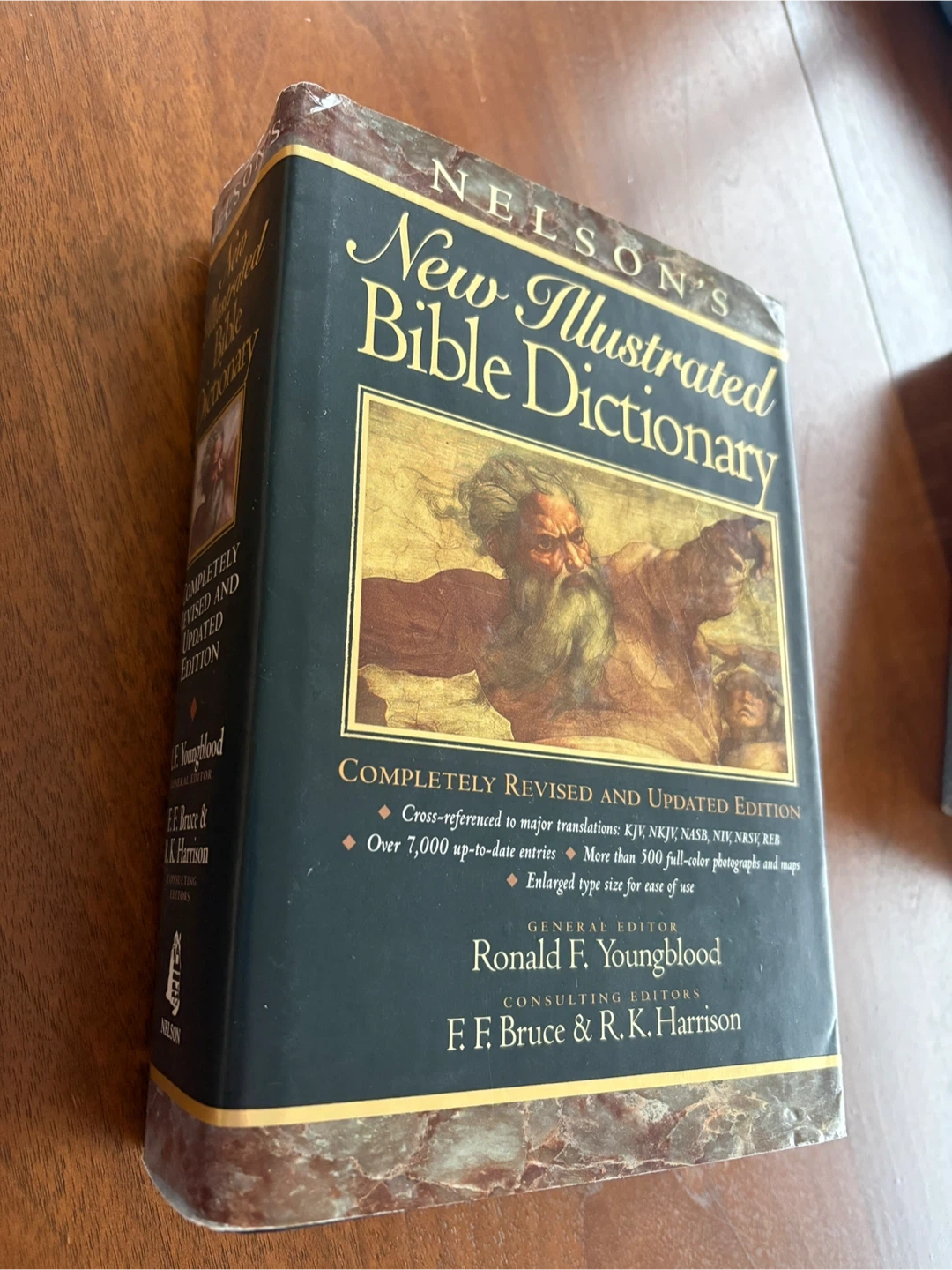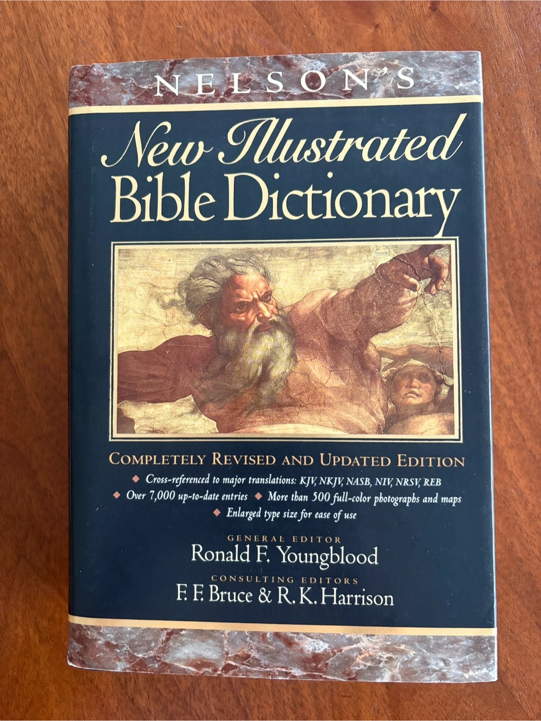 Nelson's New Illustrated Bible Dictionary, completely revised and updated edition. It features over 7,000 up-to-date entries and more than 500 full-color photographs and maps. Enlarged type size for ease of use.