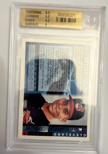 Up for sale is a 1995 Bowman #22 Bartolo Colon Rookie Card, graded BGS 9.5. This card features the Cleveland Indians pitcher in his early career and is a great addition to any Major League Baseball fan's collection. It features the player's name, team, and card number. This is from the early days of Beckett grading with the sub grades on the back: 9.5 centering, 9.5 corners, 9.5 edges, 9 surface.