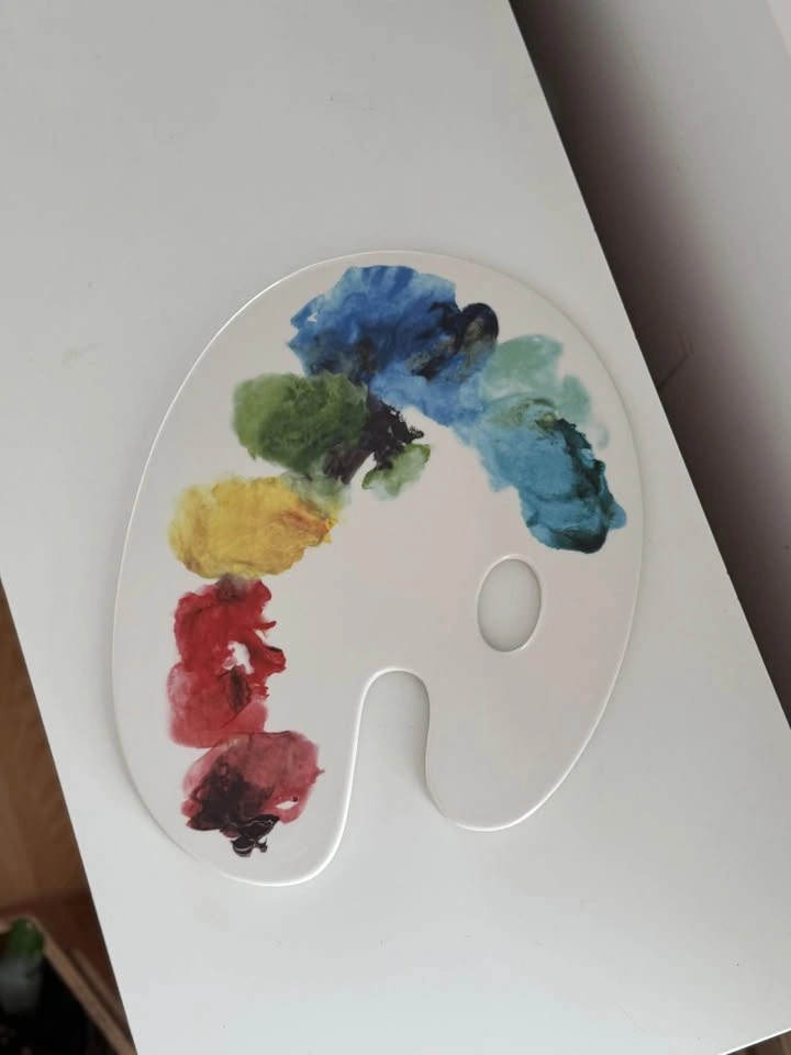 Add a splash of color to your next gathering with this Fishs Eddy Artist Palette Cheese Plate. Designed to look like a real painter's palette with vibrant watercolor "paint" splatters, this ceramic tray is perfect for charcuterie, appetizers, or as a unique decor piece for your kitchen or studio.