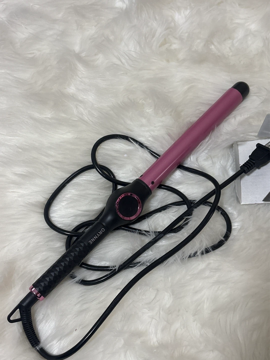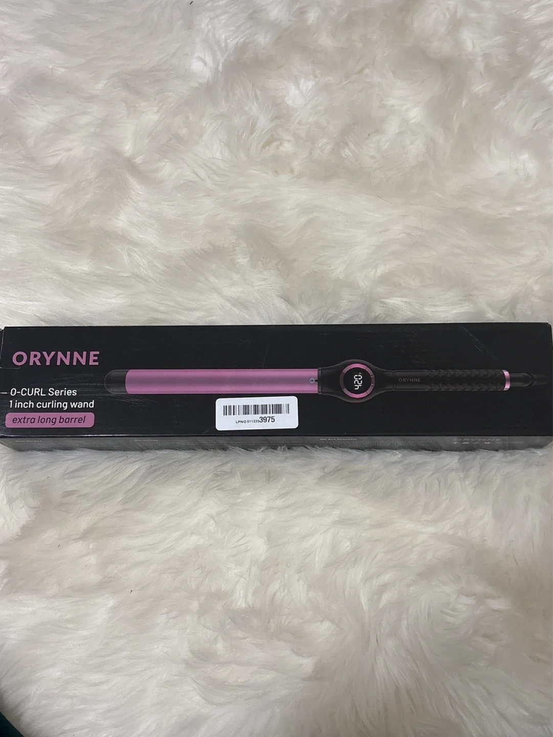 This ORYNNE curling wand has a 1-inch barrel with tourmaline ceramic technology for shiny, frizz-free curls. It offers 7 adjustable temperatures and a smart temperature display. The 360-degree tangle-free swivel cord ensures ease of use. Includes hair clips.