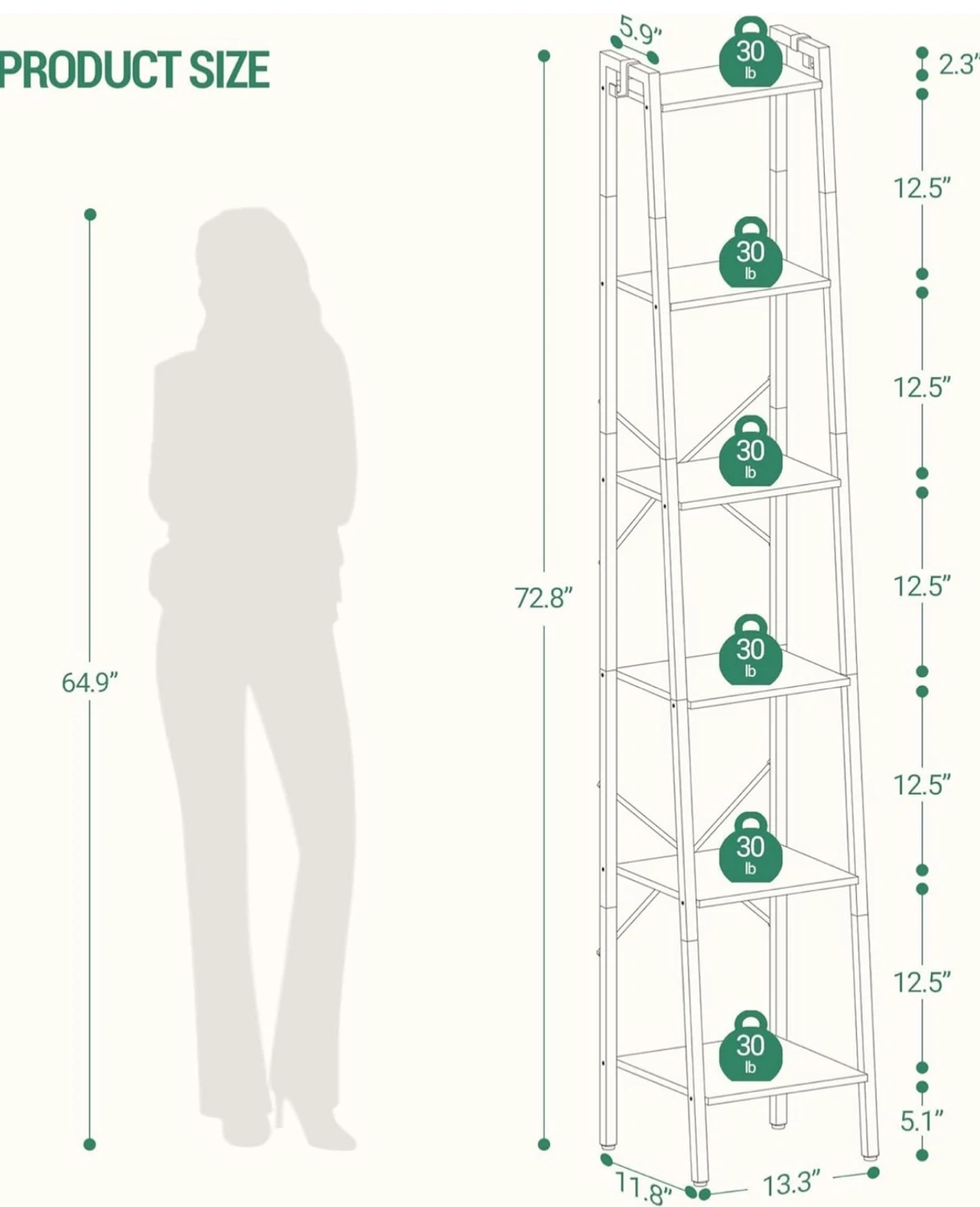 This new in box 6-tier industrial bookcase offers a stylish and functional storage solution for any room, featuring a sturdy metal frame and durable wooden shelves, perfect for books, décor, and more. I'm selling a brand new, never-opened 6-tier industrial bookcase that combines rustic charm with modern functionality. Its design ensures it fits seamlessly into any décor, offering ample storage without taking up too much space. It's ideal for organizing your books, displaying your favourite decorations, or even storing office supplies.