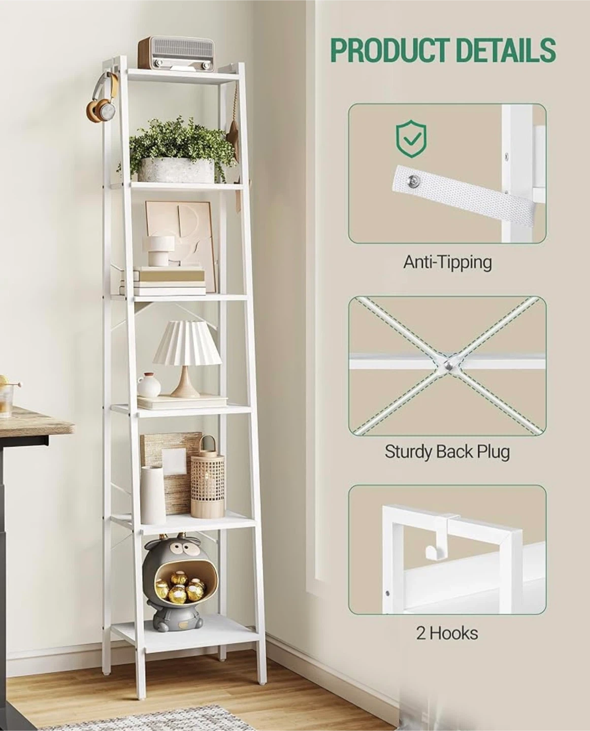 * Six Spacious Shelves: Offers plenty of room for storage and display.