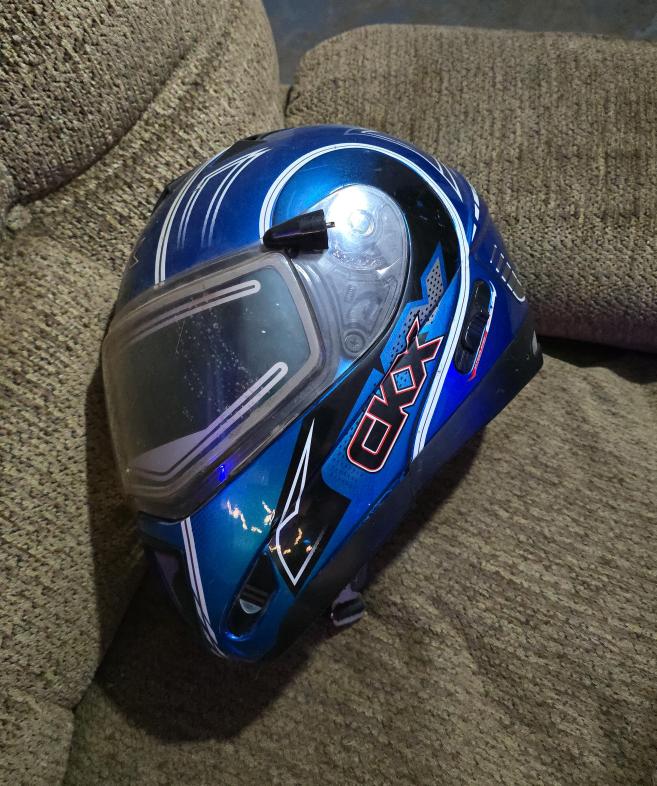 Selling a CKX snowmobile helmet. It's in good condition and ready for the winter season! The helmet is blue with a clear visor.