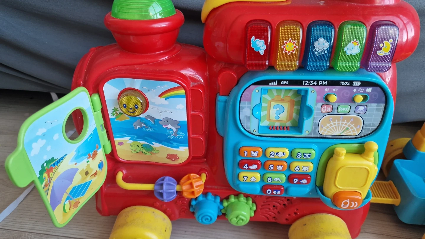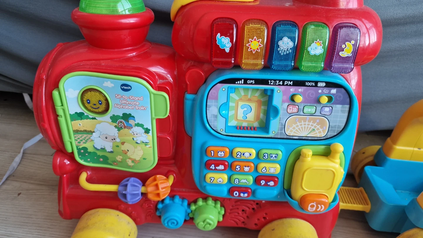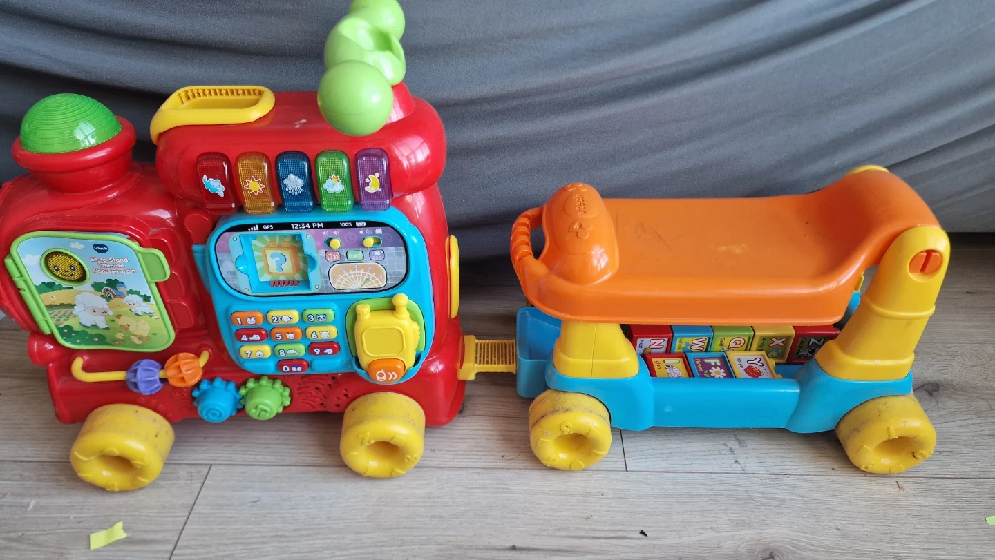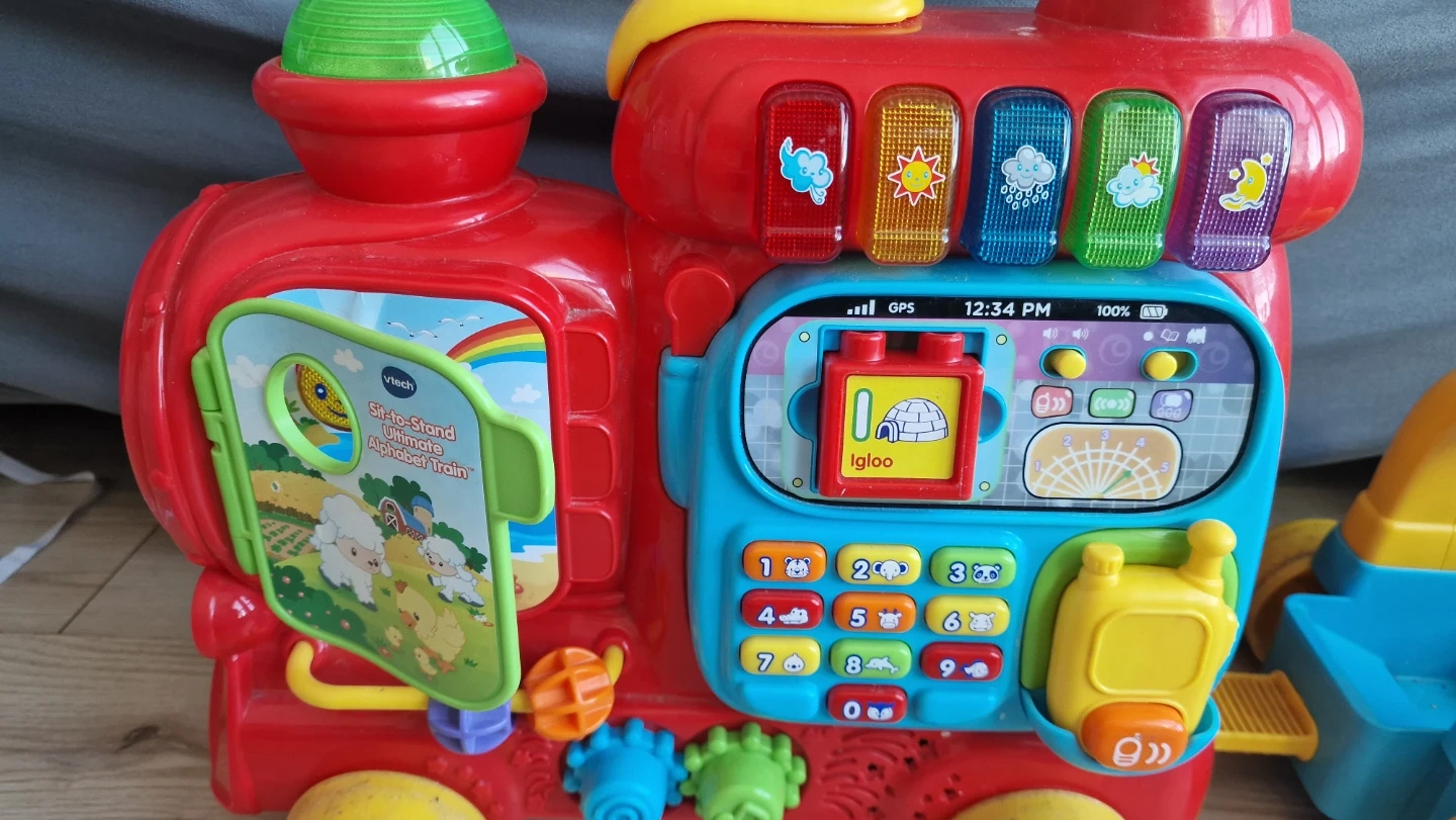 This VTech Alphabet Train is a very interactive train. It includes alphabet blocks that can be plced on the train for it to read the letter out and it will also count the number of blocks put through the train. It's designed for children to learn and play with!