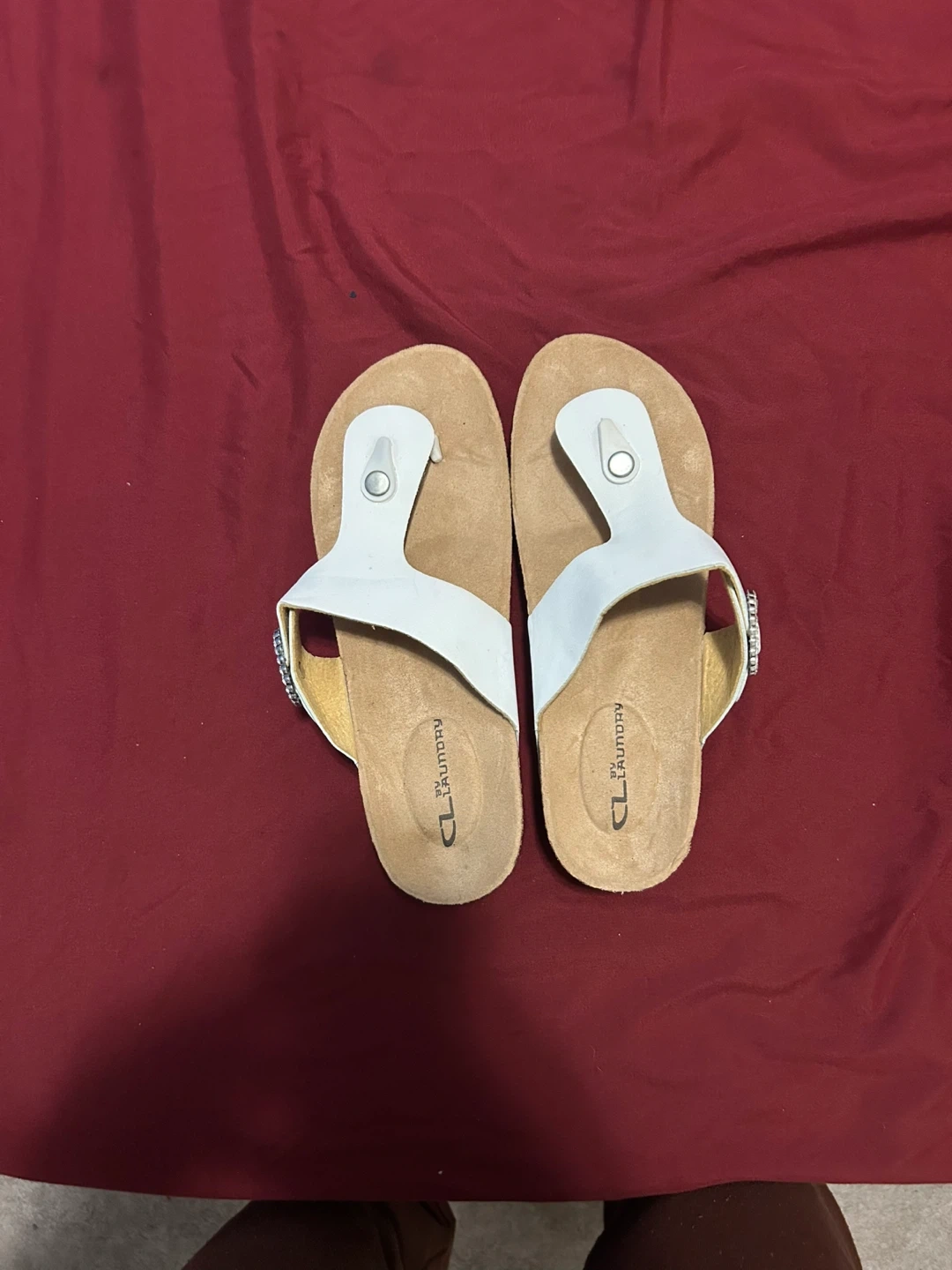 86Selling a pair of CL by Laundry sandals. They have a white strap and neutral colored sole. Perfect for summer! Only worn a few time I am decluttering I have way too many sandals