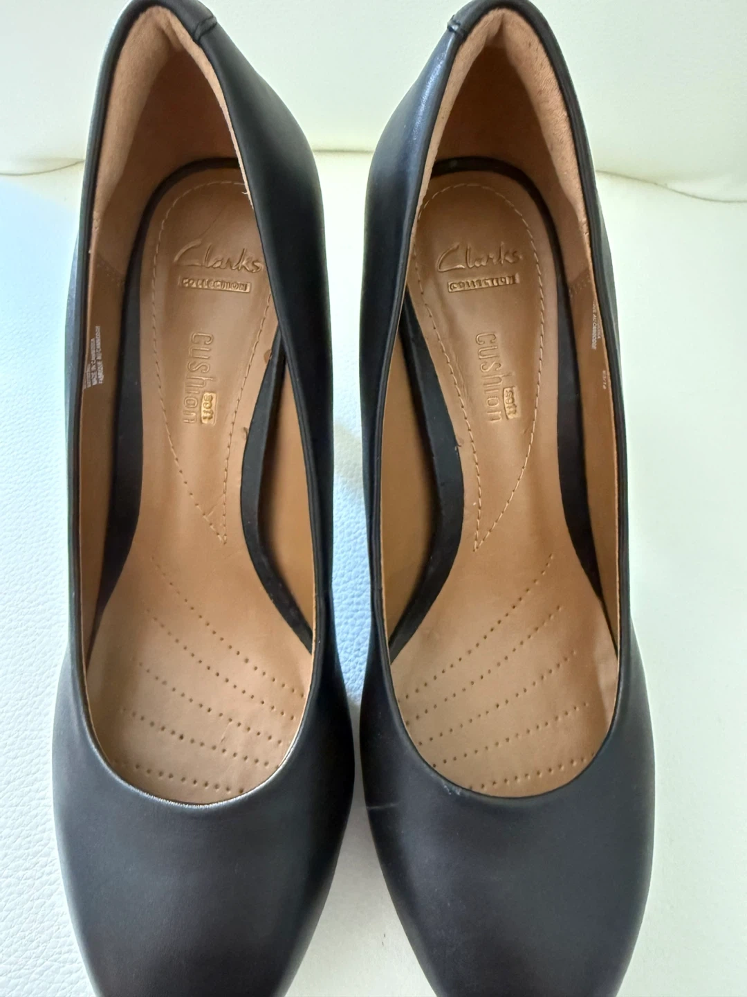 ‼️ c l o s e t c l e a r o u t ‼️ 📍 pick up near Greenbank / Hunt Club Clarks Ambyr Joy black leather heels Size 6 Excellent near new condition! Only worn once. Soft black leather upper Ultimate Comfort PU foam footbed delivers lasting cushioning Heel height: 85mm Love these shoes (SO comfortable!) but I don’t reach for them. Time for someone else to enjoy these! 🤍 🚫 clean, smoke-free home / no pet hair Thank you for your interest! Merci de votre intérêt !