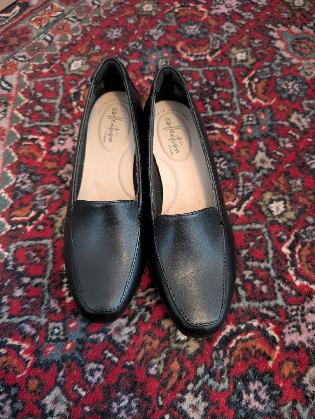 65Selling a pair of Clarks Juliet Lora loafers in black leather! They are in brand new and come with the original box. Size: 6M (US), 36 (EU)
