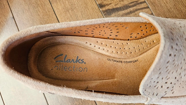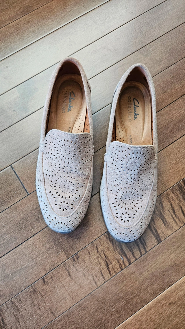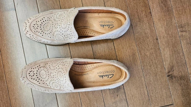 Womens Clarks suede loafers in beige colour. Size US 6.5 / UK size 4. Only worn once or twice. Like new condition. Collection only.