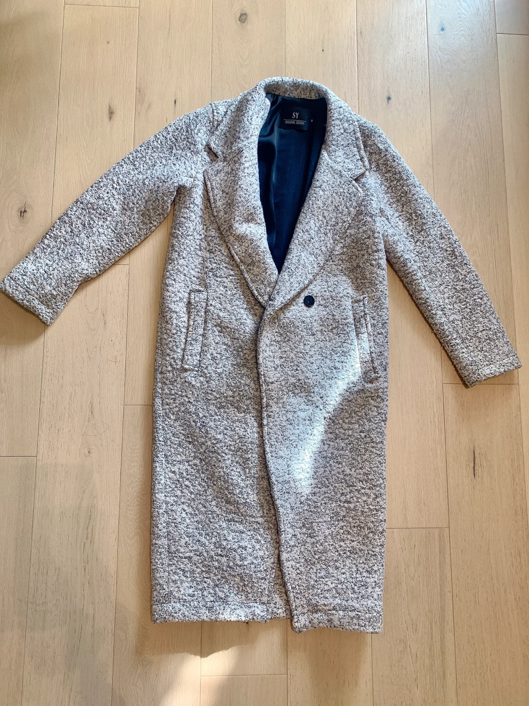 31Selling a stylish grey coat. It's a size M and features a unique textured pattern. Perfect condition very thick and very good for winter Length 116cm Chest 100cm