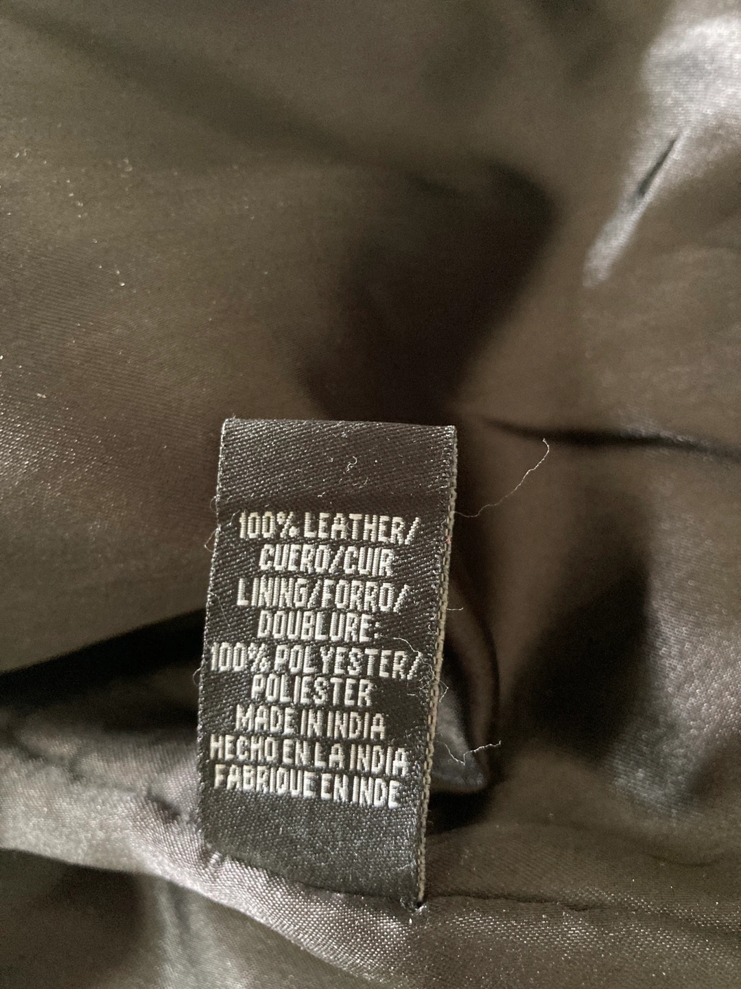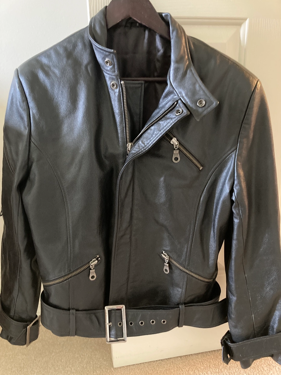 41A stylish black leather jacket. Features several zippers and a belt around the waist. Would look great paired with jeans for a casual and chic look.(only worn a few times)