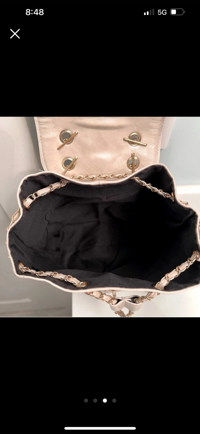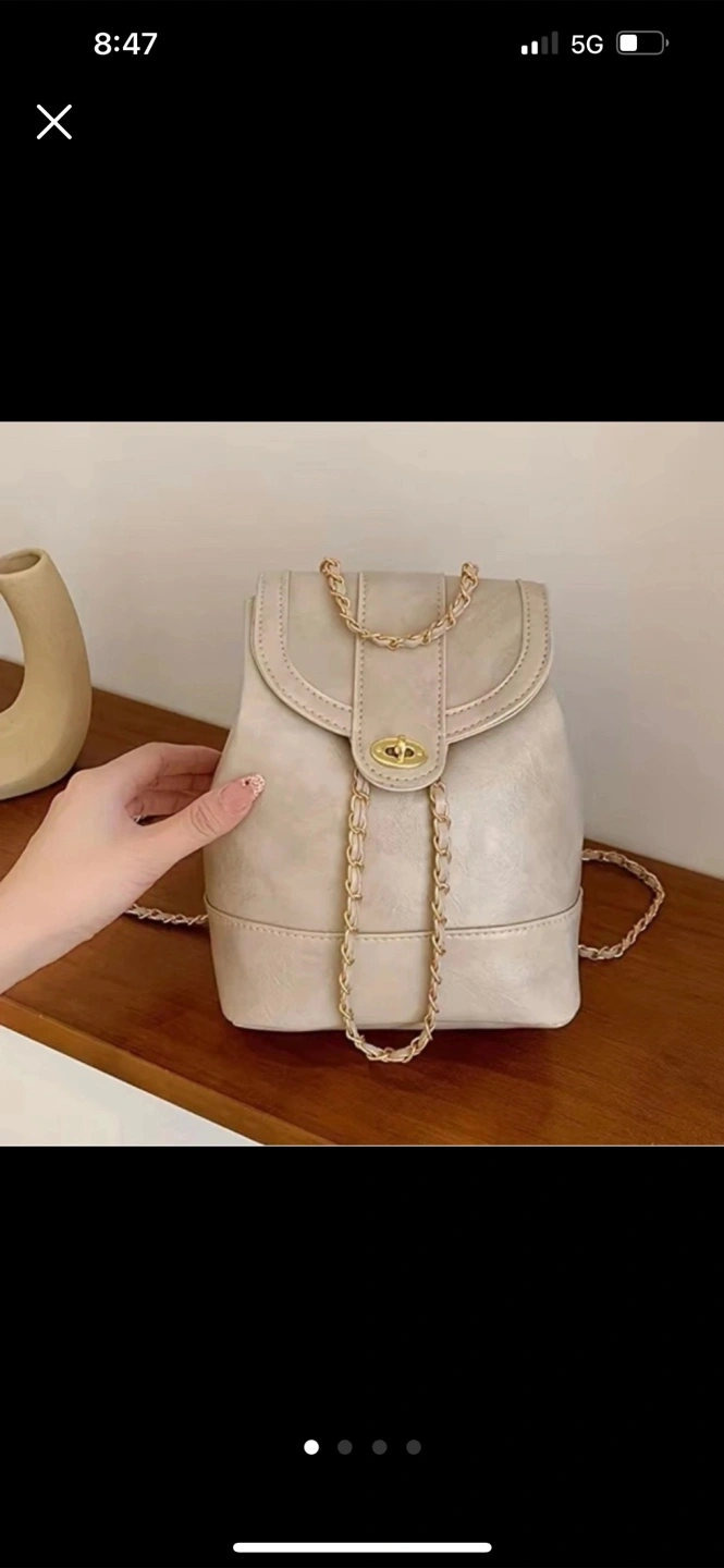 Classy Mini Vintage Flap Backpack Casual Retro Daypack Everyday Gold Chain Like new condition, worn once, interior is immaculate Great for day trips Can adjust how tight the backpack is Straps can be shortened by tying a knot on the straps on the inside Super spacious Beige, light cream colour with gold hardware straps Super cute Twist button closure Faux leather material — Academia school backpack travel purse y2k Barbiecore balletcore Parisian