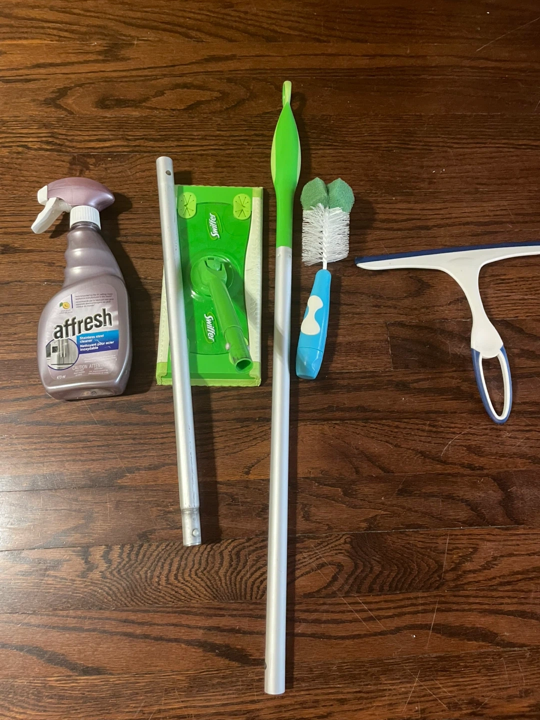 165* squeegee * bottle brush * swiffer mop * cleaner for stainless steel (more than half full) Pick up near Dufferin Mall.