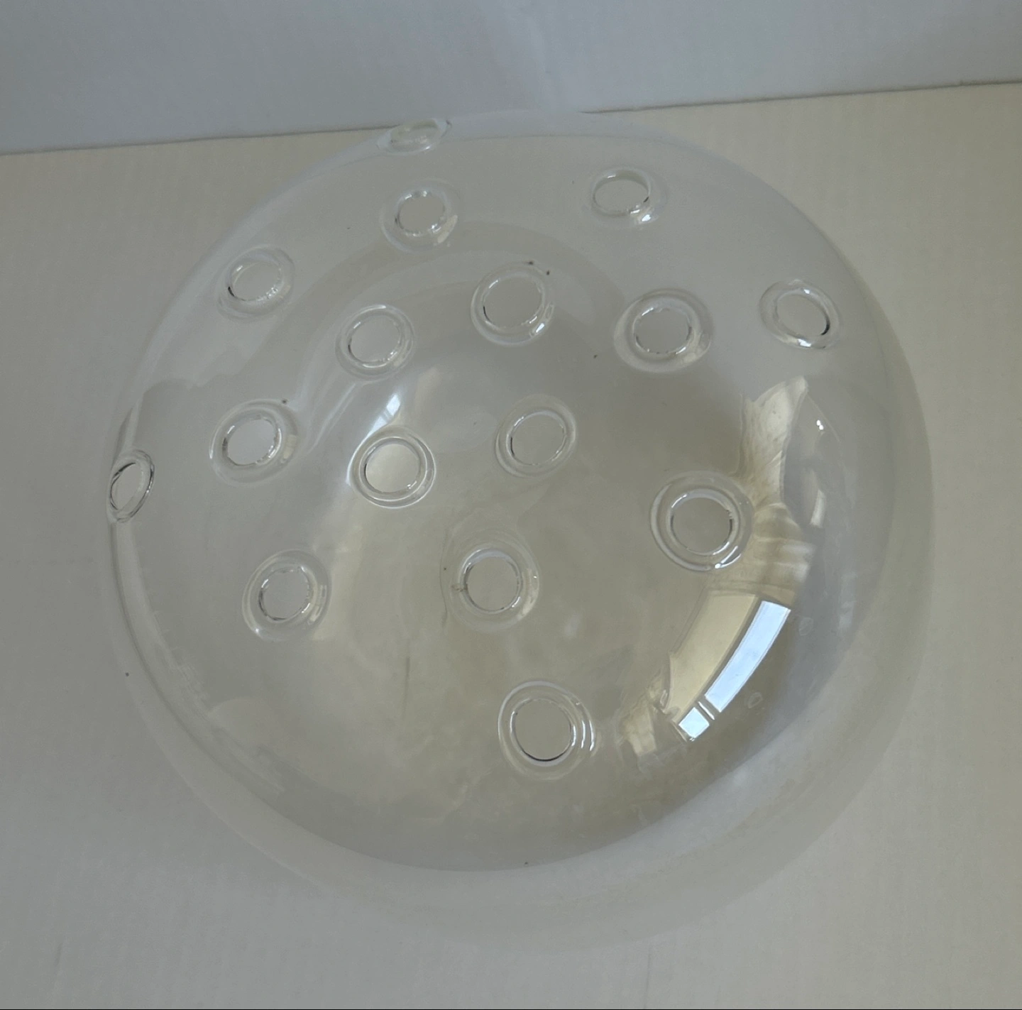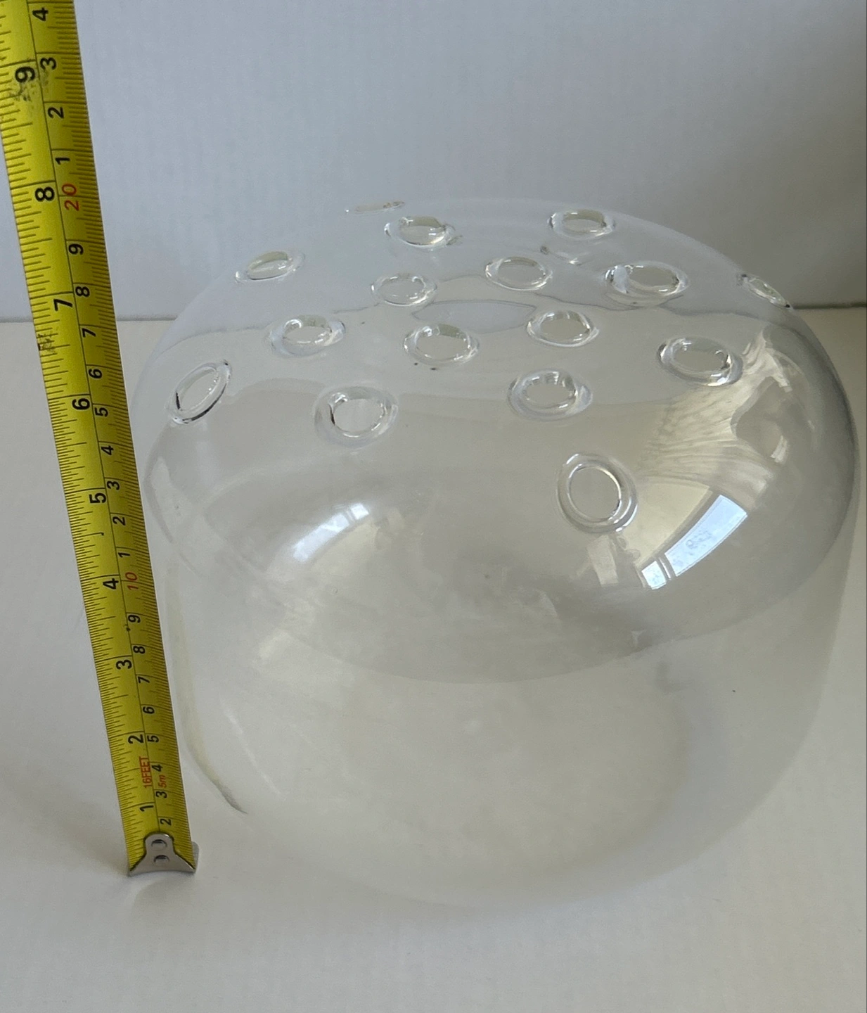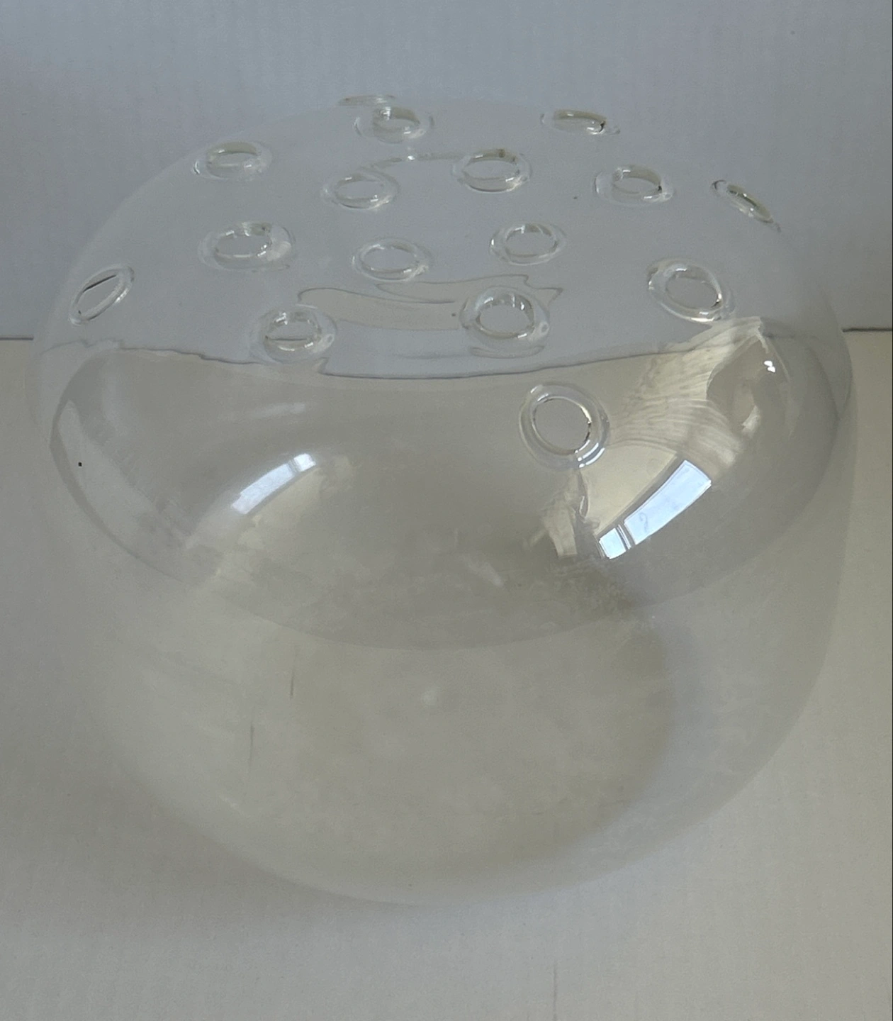 Unique clear glass flower frog or vase. Multiple small holes for flower stems. Round shape. Approximately 7-8 inches in diameter. No chips/cracks. Clean and good condition. See attached pictures please. Smoke/Pet free home. Cash & Pick up only.