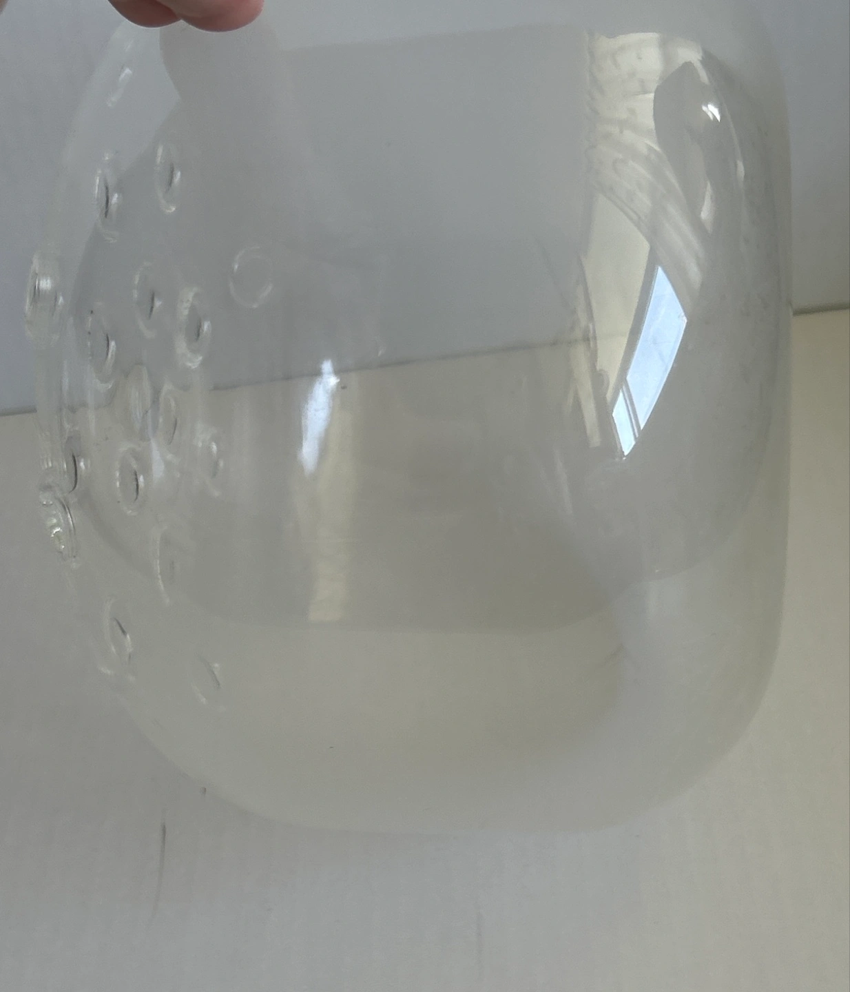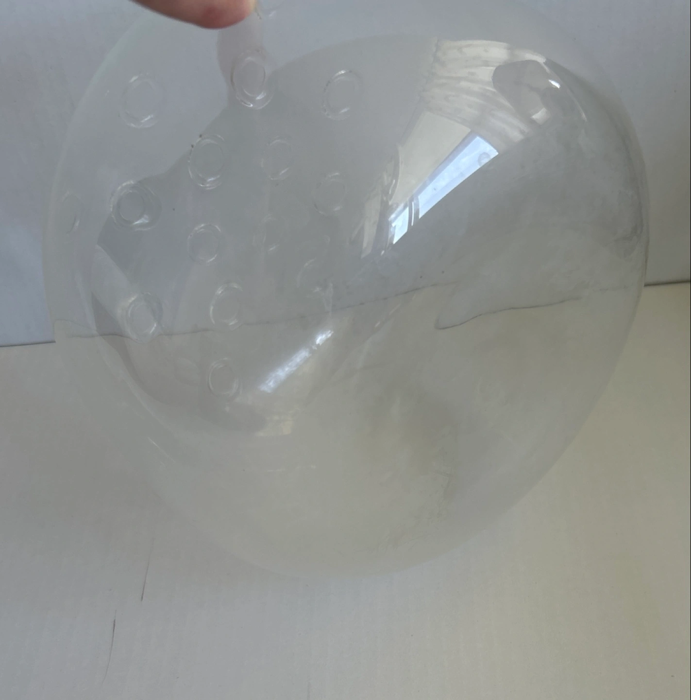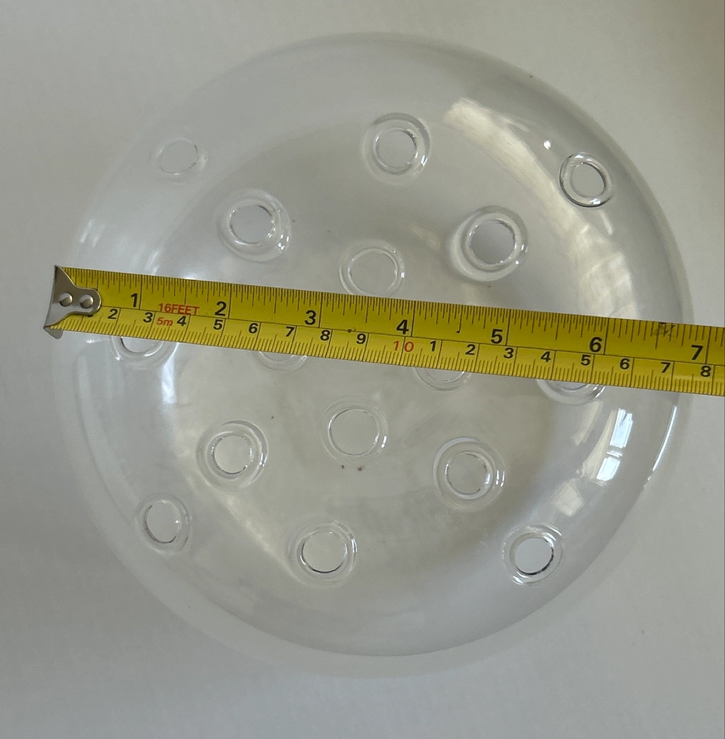 Unique clear glass flower frog or vase. Multiple small holes for flower stems. Round shape. Approximately 7-8 inches in diameter. No chips/cracks. Clean and good condition. See attached pictures please. Smoke/Pet free home. Cash & Pick up only.