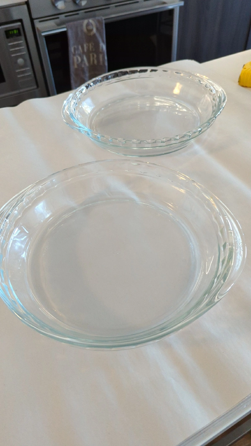 Two clear glass pie dishes - only used once for a pie-athon. Happy to give away to a young baker.