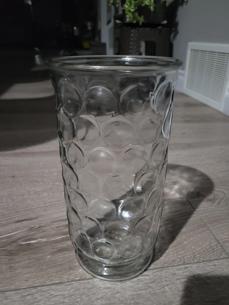 25Selling a clear glass vase with a unique bubble design! It's in great condition and would look lovely with flowers or as a standalone decorative piece 🥕 🥕