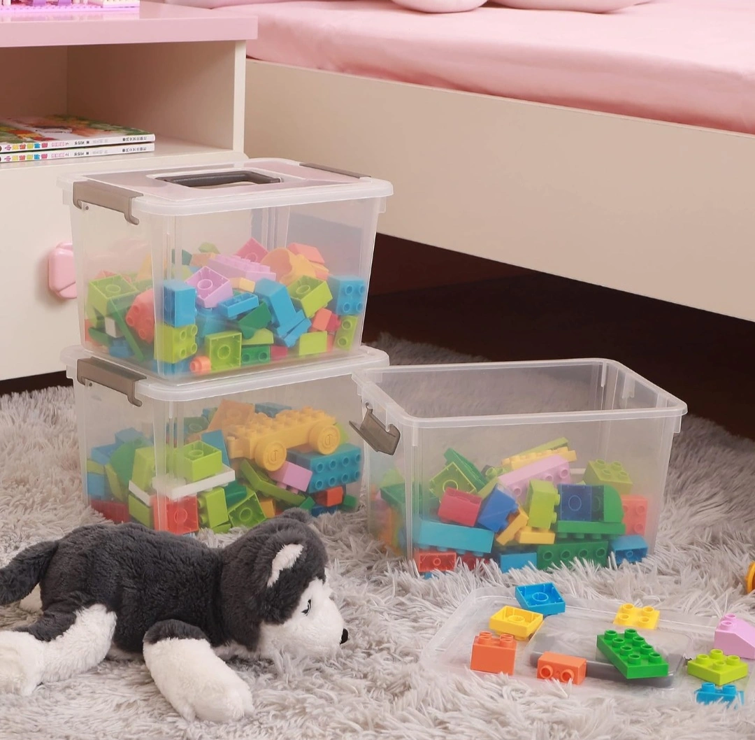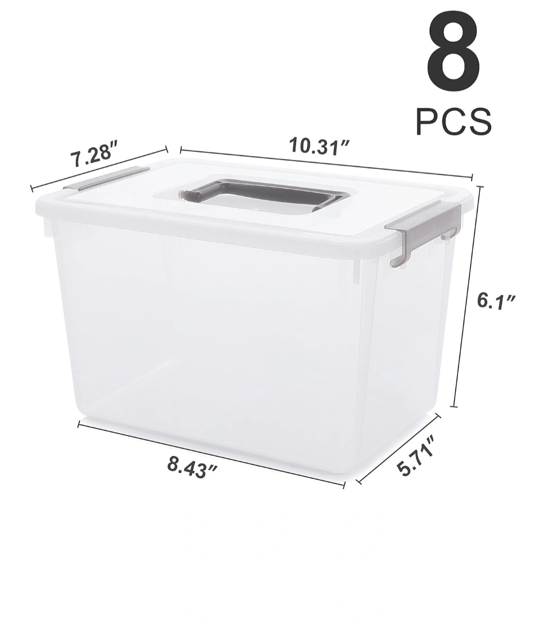 Declutter your space with this handy clear plastic storage box! It comes with a convenient handle for easy carrying. Perfect for organizing toys, snacks, or anything you need to keep tidy. Brand: ITYLIFE CITYLIFE. Colour: Clear White Material: Plastic Special feature: Portable,Stackable StyleClassic. Recommended uses: For Toys, Storage Pieces: 8 bins and 8 lids 📍Pick it up Niagara Falls