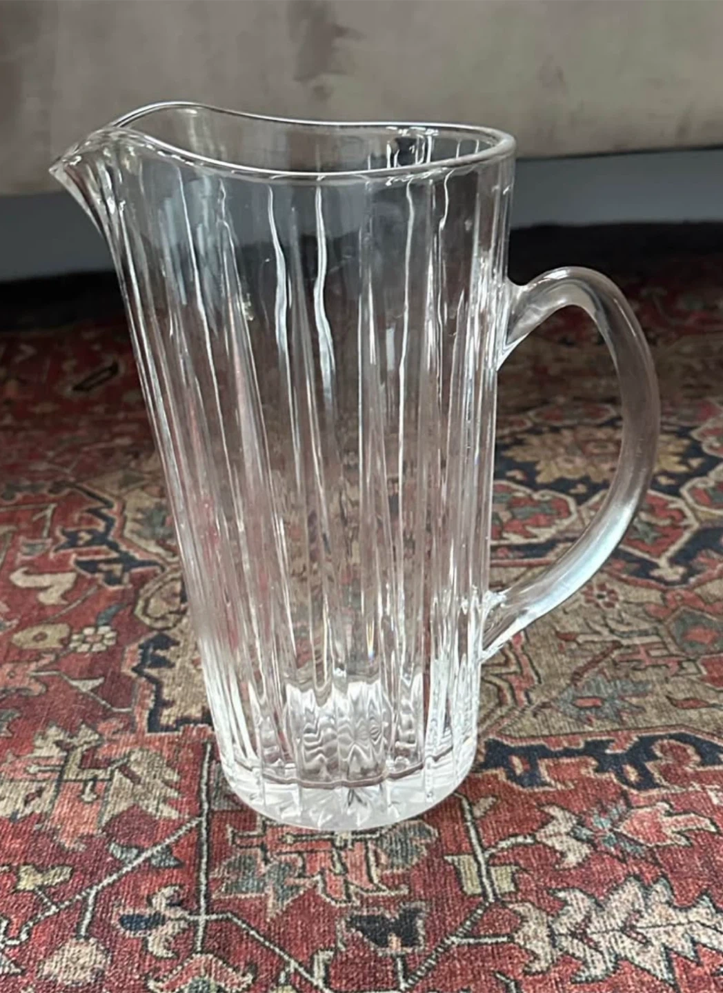 Selling a clear glass pitcher with a ribbed design. It's in great condition and ready to use for your favourite beverages