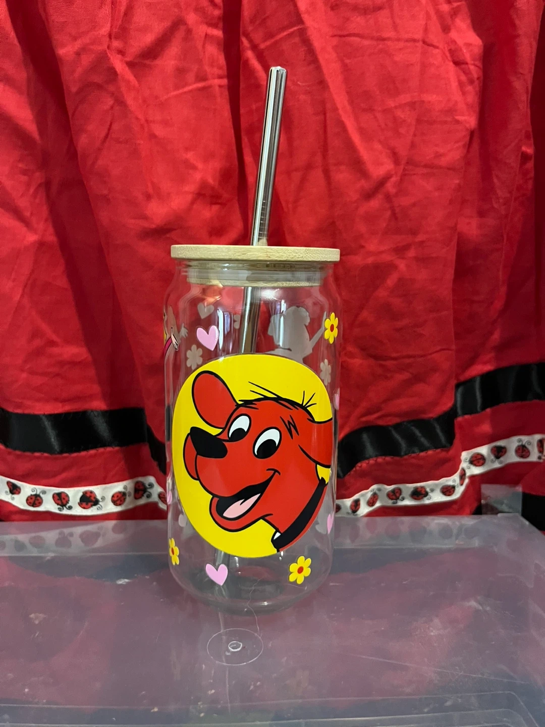 10Here's a cute glass tumbler featuring Clifford the Big Red Dog! It comes with a straw and is perfect for anyone who loves this classic character. It's in great condition and ready for a new home