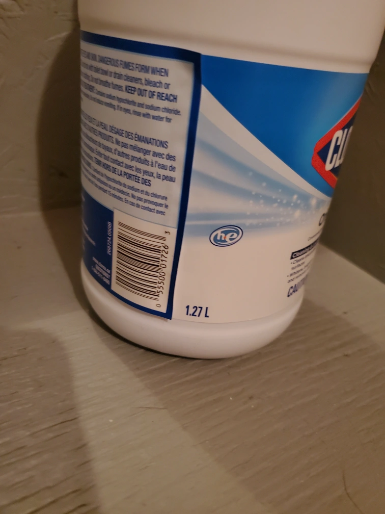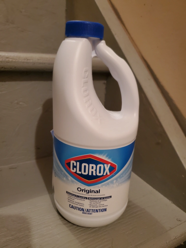 Selling a full bottle of Clorox Original Bleach. It's a 1.27L bottle, perfect for cleaning and laundry. Great for brightening whites and removing stains!