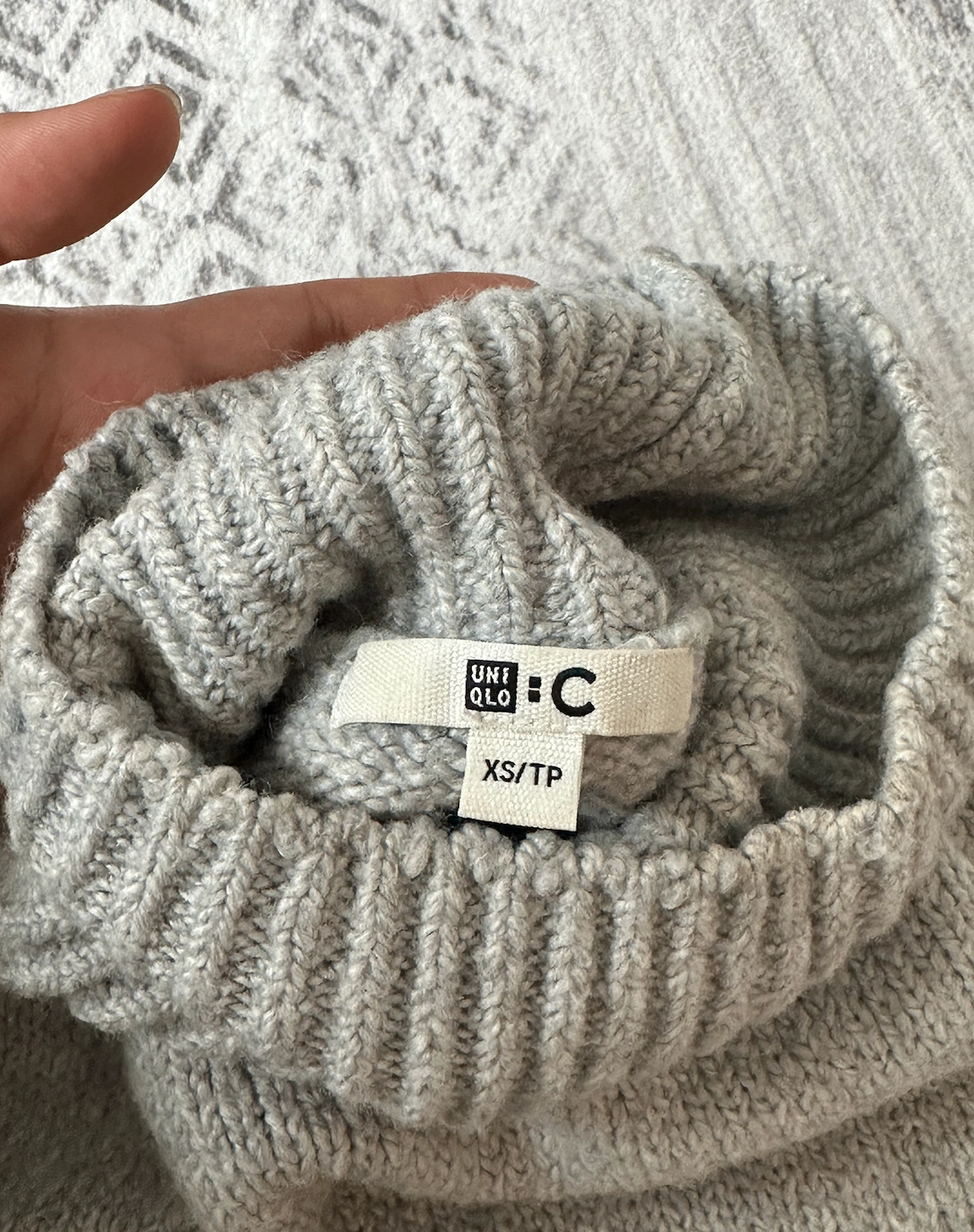 Classic and versatile gray high-neck sweater from Uniqlo. Soft, comfortable, and perfect for everyday wear or layering during colder seasons.